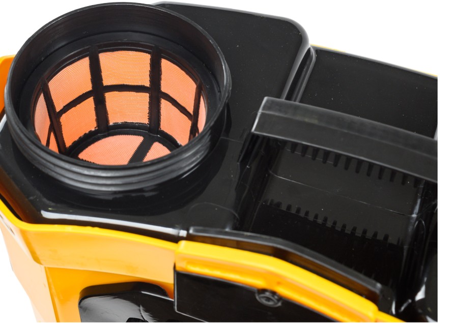 Аппарат состоит из пластиковой емкости для жидкости объемом 16 л, соединенной со шлангом 1,5 м и штангой 1 м. Дальность распыления достигает 6 м, что позволяет удобно обрабатывать даже высокие деревья.