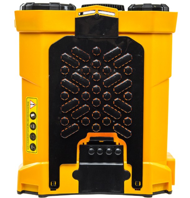 Аппарат крепится на спину с помощью двух ремней. Нажатие на рукоятку активирует двигатель, приводящий в действие помпу для подачи жидкости. Встроенный регулятор давления позволяет плавно регулировать расход жидкости. Производительность аппарата достигает 5,5 л/мин.