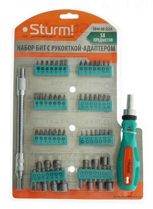 Отвертка с насадками , 58 ПРЕДМЕТОВ, БИТЫ С ДЕРЖАТЕЛЕМ, Sturm!