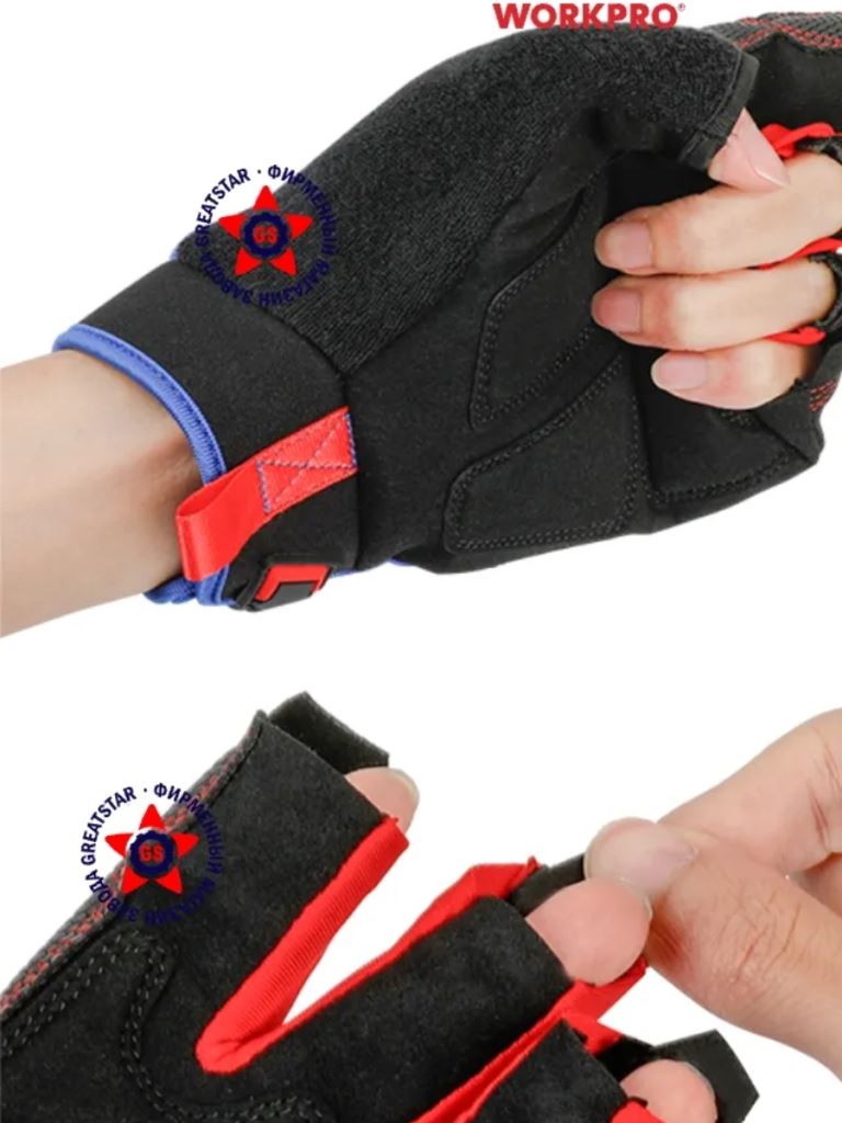 Перчатки строительные WORKPRO с открытыми пальцами размер L предназначены для монтажных, плотницких, производственных и других работ.