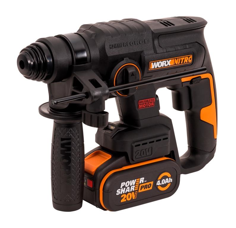Аккумуляторный перфоратор WORX WX381 обладает высокой мощностью, позволяя легко сверлить бетон, металл или кирпичную кладку. Перфоратор работает от универсального аккумулятора WORX Powerhare 20В, обеспечивая свободу перемещения и независимость от электросети. Бесщеточный двигатель Перфоратор WX381 оснащен бесщеточным двигателем нового поколения, Благодаря отсутствию щеток, аккумуляторный перфоратор получил на 25% больше мощности и увеличенный на 50% срок службы по сравнению с щёточными аналогами. 4 функции перфоратора Универсальный перфоратор WORX WX381 совместил в себе сразу 3 режима работы: сверление, ударное сверление, долбление, а также возможность регулировки положения долота в патроне. Благодаря скорости вращения до 1350 оборотов в минуту и ударной энергии 2,0Дж, перфоратор позволяет легко сносить стены и разбивать бетонные блоки. Удобство работы Перфоратор имеет эргономичную основную рукоять с резиновым покрытием и откидную боковую ручку с антивибрационной системой. Металлический ограничитель глубины сверления позволяет избежать погрешности в ходе работы. Для комфортного и безопасного сверления в условиях ограниченной видимости предусмотрена светодиодная подсветка. Безопасность работы обеспечивается предохранительной муфтой. SDS-Plus Патрон SDS-Plus обеспечивает простоту подбора и замены оснастки. Быстрозажимной патрон позволяет быстро подготовить перфоратор к работе без использования дополнительного инструмента. В комплект поставки WX381 уже входят 3 SDS сверла. Аккумуляторная конструкция Работа от универсального аккумулятора WORX Powershare 20В избавляет вас от лишних неудобств. Аккумулятор обеспечивает длительную автономную работу, быстрый запуск перфоратора и отсутствие вредных выбросов в окружающую среду. Электронная плата защиты от глубокого разряда гарантирует длительный срок службы батареи. Технические характеристикиАккумуляторная батарея: 20 В 4 Ач Скорость холостого хода: 0-1350 об / мин Скорость удара: 0 - 4700 ударов в минуту Энергия удара: 2,0 Дж Диаметр сверления: бетон 22мм/ дерево 28 мм/ Сталь 13 мм Время зарядки аккумулятора : 2 часа Вес : 2,1 кг