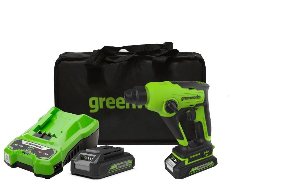 Перфоратор Greenworks GD24SDS1 24V бесщеточный аккумуляторный c 2 Ач АКБ и ЗУ, в сумке, арт. 3803107