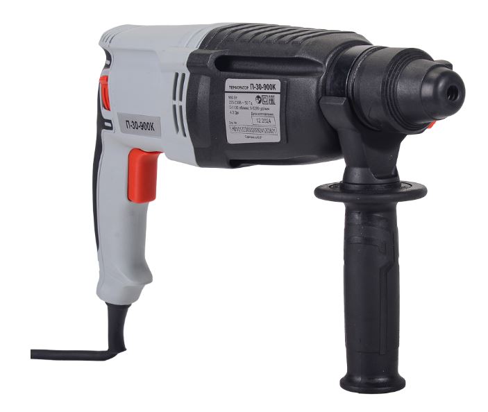 Перфоратор обладает мощностью 900 Вт и имеет горизонтальное расположение двигателя, параллельное ударной оси. Такая конструкция обеспечивает оптимальное распределение нагрузки и снижает утомляемость при длительной работе.