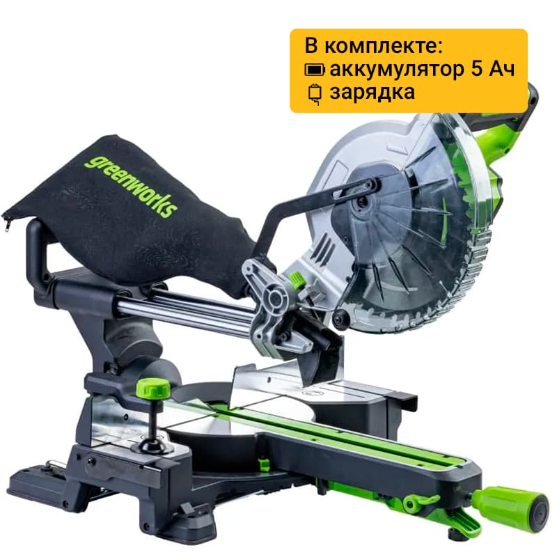 Торцовочная пила с протяжкой Greenworks GD24MS216 — это мобильное, производительное и удобное в использовании устройство.