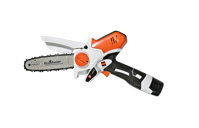 Аккумуляторная цепная пила Sturm! CSC18061 прекрасно справится с обрезкой веток деревьев и простыми столярными работами.