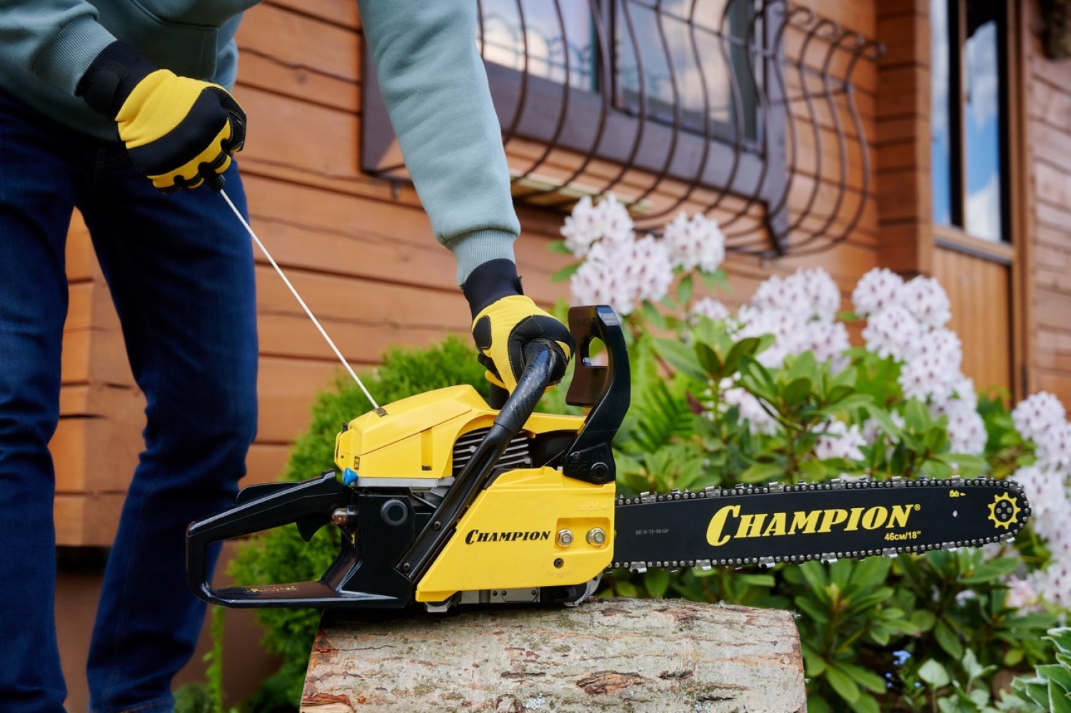 Длина пильного полотна составляет 45 см, что позволяет валить деревья большого диаметра. Пильное полотно имеет ширину паза 1,5 мм, а его ведомая звездочка крепиться на четырех клепках. Бензопила Champion 256-18 оборудована надежным диафрагменным карбюратором, обеспечивающим уверенный запуск даже при отрицательных температурах. Для работы зимой у пилы предусмотрен подогрев карбюратора за счет направления на него горячих выхлопных газов.