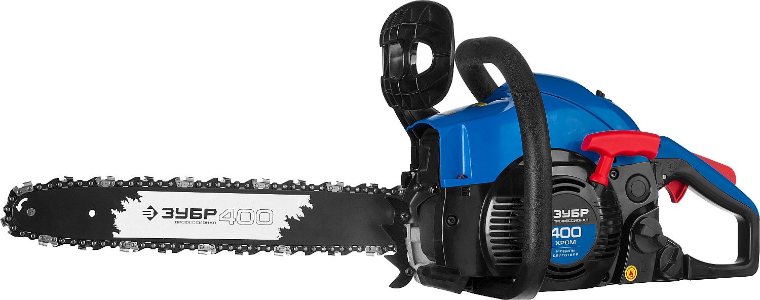 Идеальный вариант для пиления досок, бруса, стволов различных пород дерева на дачном участке. В отличие от электрической, бензиновая пила оснащена более мощным двигателем, безопасна в отношении поражения электрическим током, может работать в любую погоду и в любом месте. Функции легкого запуска, автоматической смазки цепи и эффективная антивибрационная защита делают пилу легкой в обращении и комфортной в работе. Двойной тормоз цепи, приводимый в действие при откидывании защитного щитка или при отпускании клавиши блокировки на рукоятке, а также встроенный цепеуловитель и металлический упор делают пилу безопасной в применении. Большая удельная мощность, высокое качество применяемых материалов и изготовления, обеспечивающие увеличенный ресурс, делают бензиновую пилу ЗУБР Вашим лучшим помощником