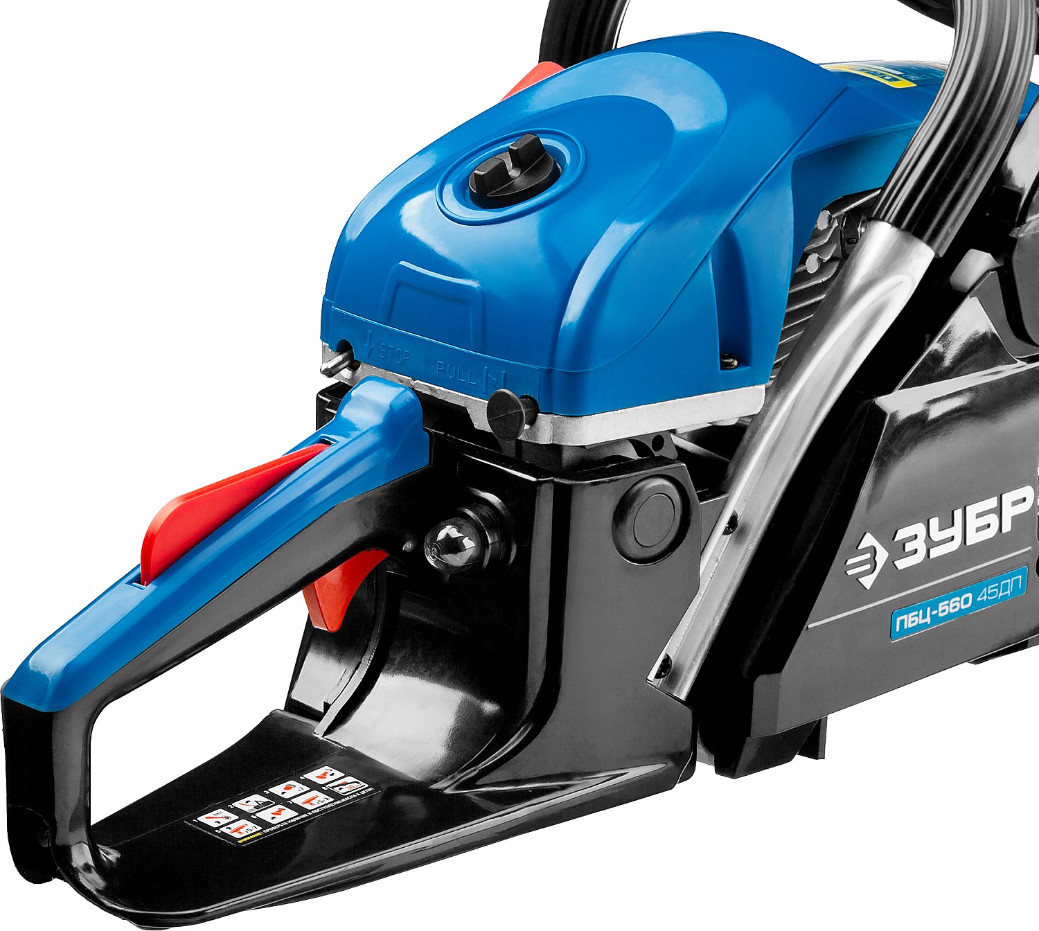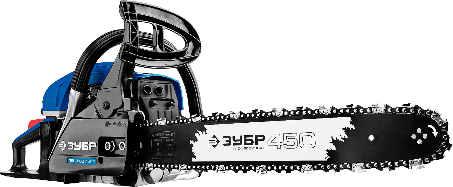Идеальный вариант для пиления досок, бруса, стволов различных пород дерева на дачном участке. В отличие от электрической, бензиновая пила оснащена более мощным двигателем, безопасна в отношении поражения электрическим током, может работать в любую погоду и в любом месте. Функции легкого запуска, автоматической смазки цепи и эффективная антивибрационная защита делают пилу легкой в обращении и комфортной в работе. Двойной тормоз цепи, приводимый в действие при откидывании защитного щитка или при отпускании клавиши блокировки на рукоятке, а также встроенный цепеуловитель и металлический упор делают пилу безопасной в применении. Большая удельная мощность, высокое качество применяемых материалов и изготовления, обеспечивающие увеличенный ресурс, делают бензиновую пилу ЗУБР Вашим лучшим помощником