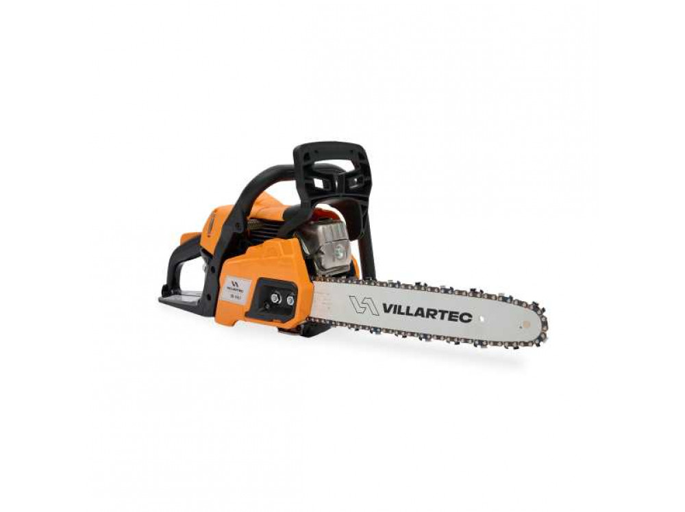 Бензиновая цепная пила VILLARTEC SB 1961 значительно облегчит и ускорит работу на садовом участке, а также при домашних работах в частном секторе. Мощность пилы составляет 2 лошадиные силы, а длина шины составляет 35 см. Инструмент способен справляться с значительными нагрузками при впечатляющих параметрах реза. Для производства данного инструмента использованы только самые лучшие и качественные материалы, начиная от пластиковых деталей корпуса и заканчивая механическими узлами, изготовленными из качественных сплавов. Поэтому инструмент является надежным, качественным, высоко ресурсным, удобным и приятным в использовании. Эффективная система отвода тепла от двигателя увеличивает продолжительность работы пилы без перегрева. Множественные тонкие рёбра охлаждения обдуваются увеличенным потоком воздуха от маховика с модернизированной крыльчаткой. Качественная пильная гарнитура обеспечивает отличный рез древесины с минимальной вибрацией и малым шумом. Режущие зубья долго сохраняют остроту и работоспособность. Антивибрационная система минимизирует вибрационные нагрузки на руки, обеспечивая возможность продолжительной работы без усталости и негативного влияния вибрации. Тормоз цепи делает работу безопасной, мгновенно останавливая вращение пильной цепи в случае необходимости. Пила работает на топливной смеси из масла для двухтактных высокооборотистых двигателей с воздушным охлаждением и бензина АИ 92 в соотношении 40:1. То есть, к одному литру бензина необходимо добавить 25 мл масла и смешать. Такое соотношение является самым оптимальным для эффективной смазки и отвода тепла во время работы двухтактного двигателя. Для удобства пользователей пила имеет поясняющие надписи и пиктограммы на корпусе, напоминая о правильном управлении, пропорциях разведения смеси и предназначении каждого бака. Яркий цвет корпуса делает инструмент заметным как летом, на фоне растительности, так и зимой в снегу. Шина длиной 35 см позволяет выполнять распилы значительных размеров. Для обслуживания пилы владельцем требуется минимум инструмента.