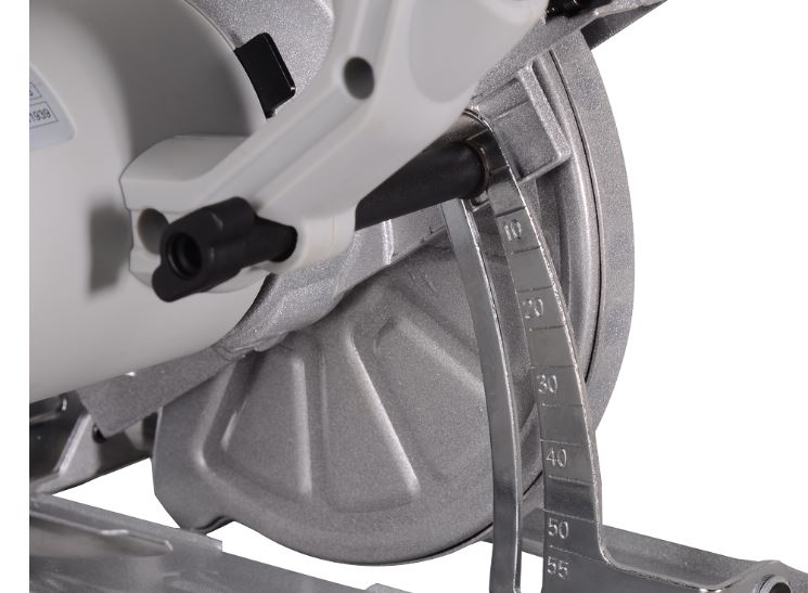 Поддерживает точность и ровность распила специальная опорная плита, регулируемая по углу наклона, а также имеется отдельный регулятор, позволяющий устанавливать желаемую глубину пропила. Дополнительно предусмотрена крепежная деталь для установки параллельного упора, помогающего добиться максимальной точности и правильности среза.