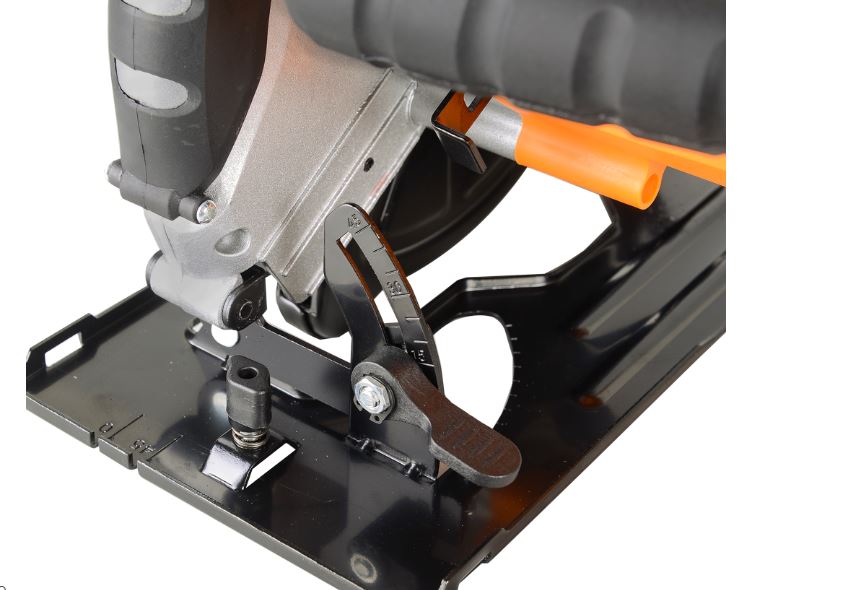 Верхний кожух оснащен системой отвода стружки, которая эффективно очищает линию реза от отходов, обеспечивая хорошую видимость и продляя срок службы инструмента. Нижний кожух выполнен плавающим и снабжен возвратной пружиной, что позволяет ему автоматически закрываться после завершения реза, обеспечивая дополнительную защиту оператора.