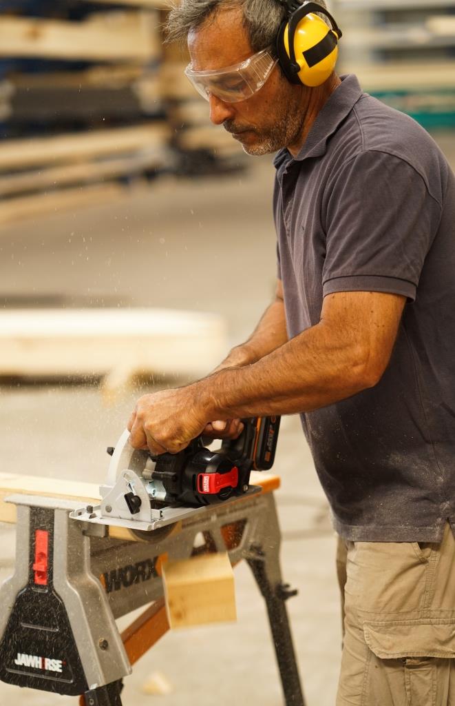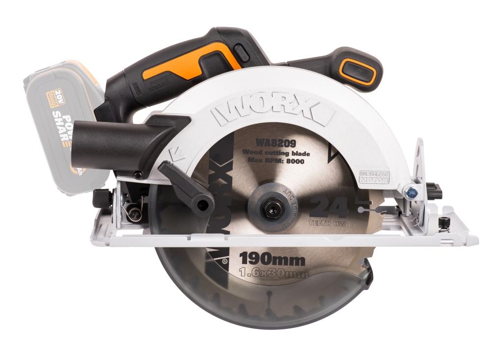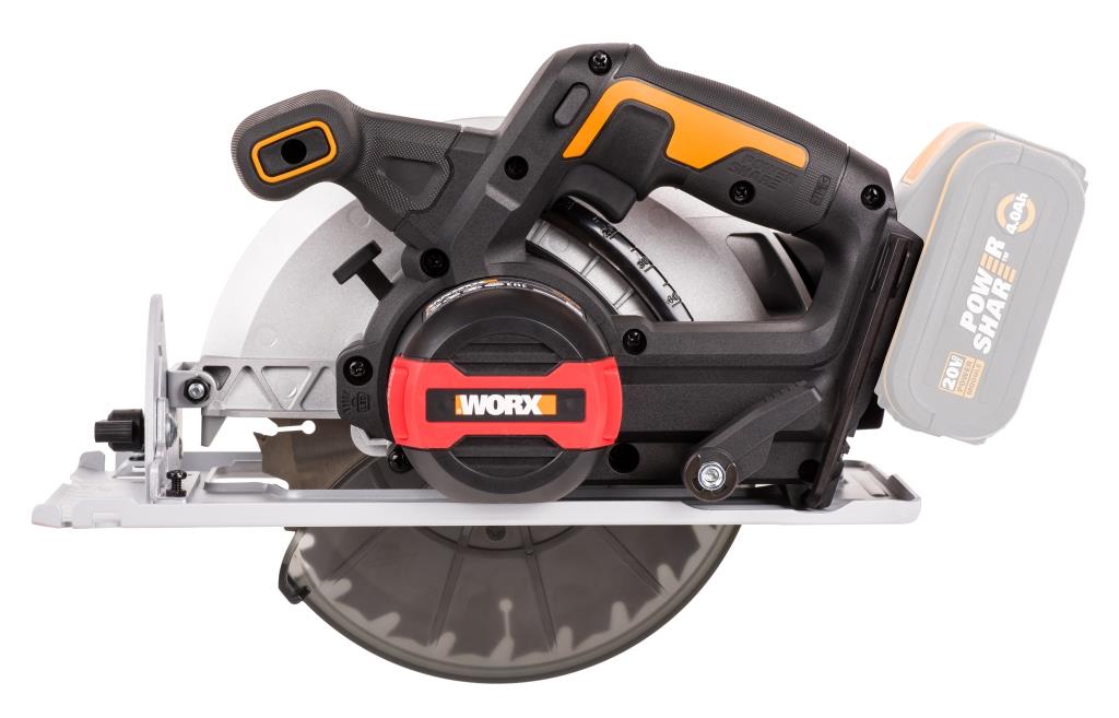 Аккумуляторная циркулярная(дисковая) пила WX520.9 с пильным диском 190 мм и глубиной пропила до 67,5 мм подходит для 99% работ по пилению. Пильный диск имеет посадочный диаметр 30мм, что позволяет легко подобрать оснастку в любом строительном магазине. Благодаря увеличенному диапазону угла наклона пилы вы можете выполнять косые пропилы под углом до 57 °. При 45 ° глубина пропила составляет 47,5 мм. Циркулярная пила оснащена бесщеточным двигателем нового поколения, обеспечивающим высокую скорость вращения диска, достигающую 6100 об/мин на холостом ходу. Благодаря отсутствию щеток, двигатель этой пилы получил на 25% больше мощности и увеличенный на 50% срок службы. WX520.9 работает от универсального аккумулятора WORX Powershare 20В, совместимого со всеми инструментами WORX в линейке вольтажа. Литий-ионные батареи серии Powershare оснащены электронной платой защиты от глубокого разряда и перегрева, что делает их надежными и долговечными источниками питания. Блокировка шпинделя позволяет легко заменить пильный диск. Глубина реза также плавно регулируется, как и угол наклона. Внимание: этот комплект поставляется без аккумулятора (АКБ) и зарядного устройства (ЗУ) Технические характеристикиАккумулятор: 20 В Макс. Скорость холостого хода: 6100 об / мин. Диаметр диска: 190х30 мм. Глубина резания в нормальном режиме: 90 °: 67,5 мм, 45 °: 47,5 мм, Угол наклона: 0-57 ° Вес (без АКБ): 2,9 кг