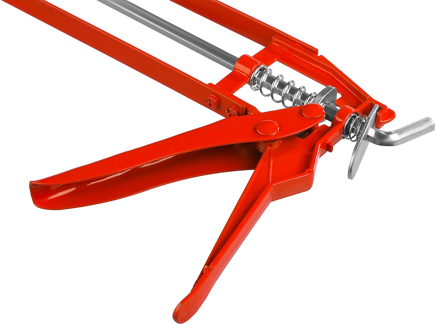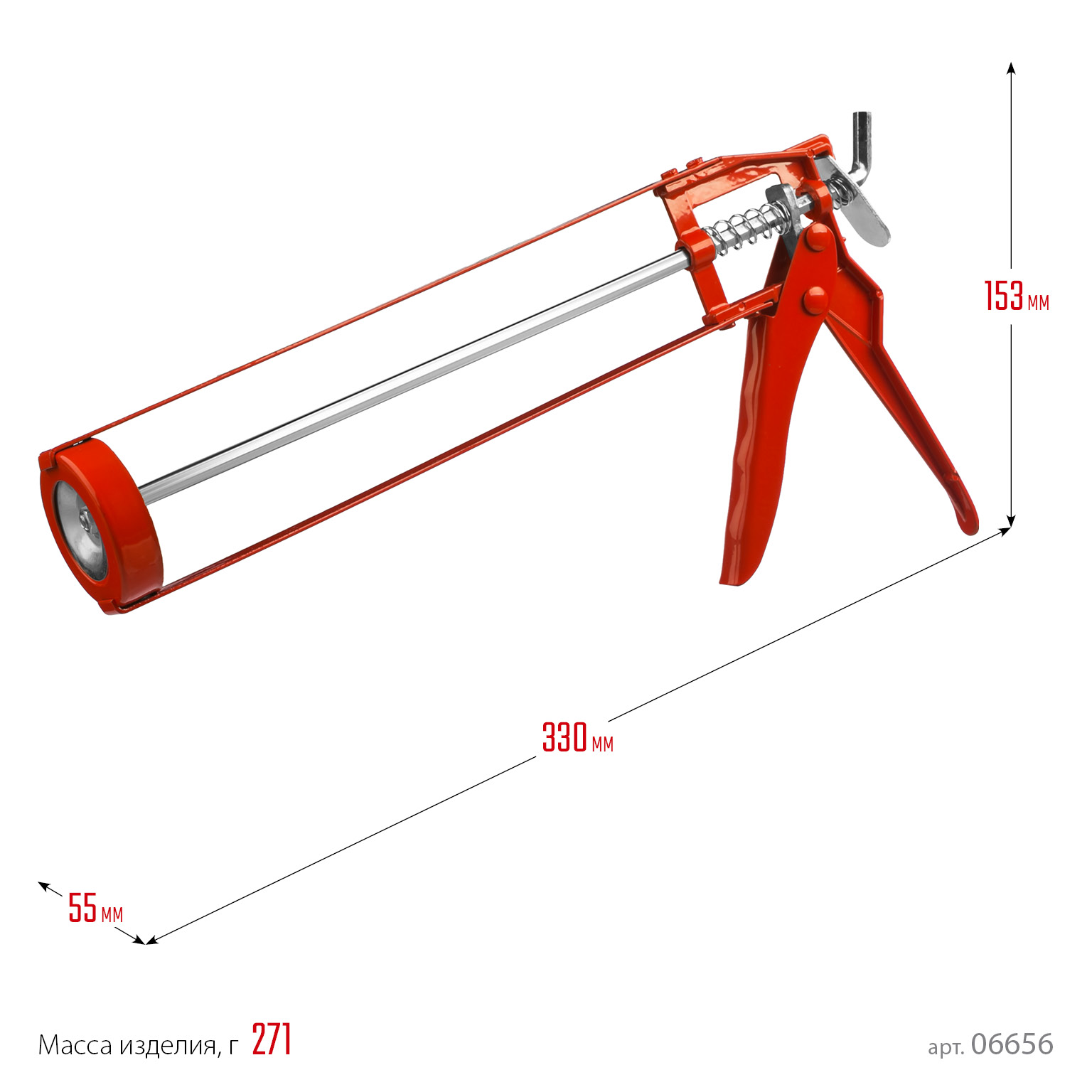 Пистолет для герметиков подходит для работы с картриджами объемом 310 мл, имеет скелетную конструкцию из стали, ручку из алюминиевого сплава, которые способствуют равномерной подачи клея либо герметика.
