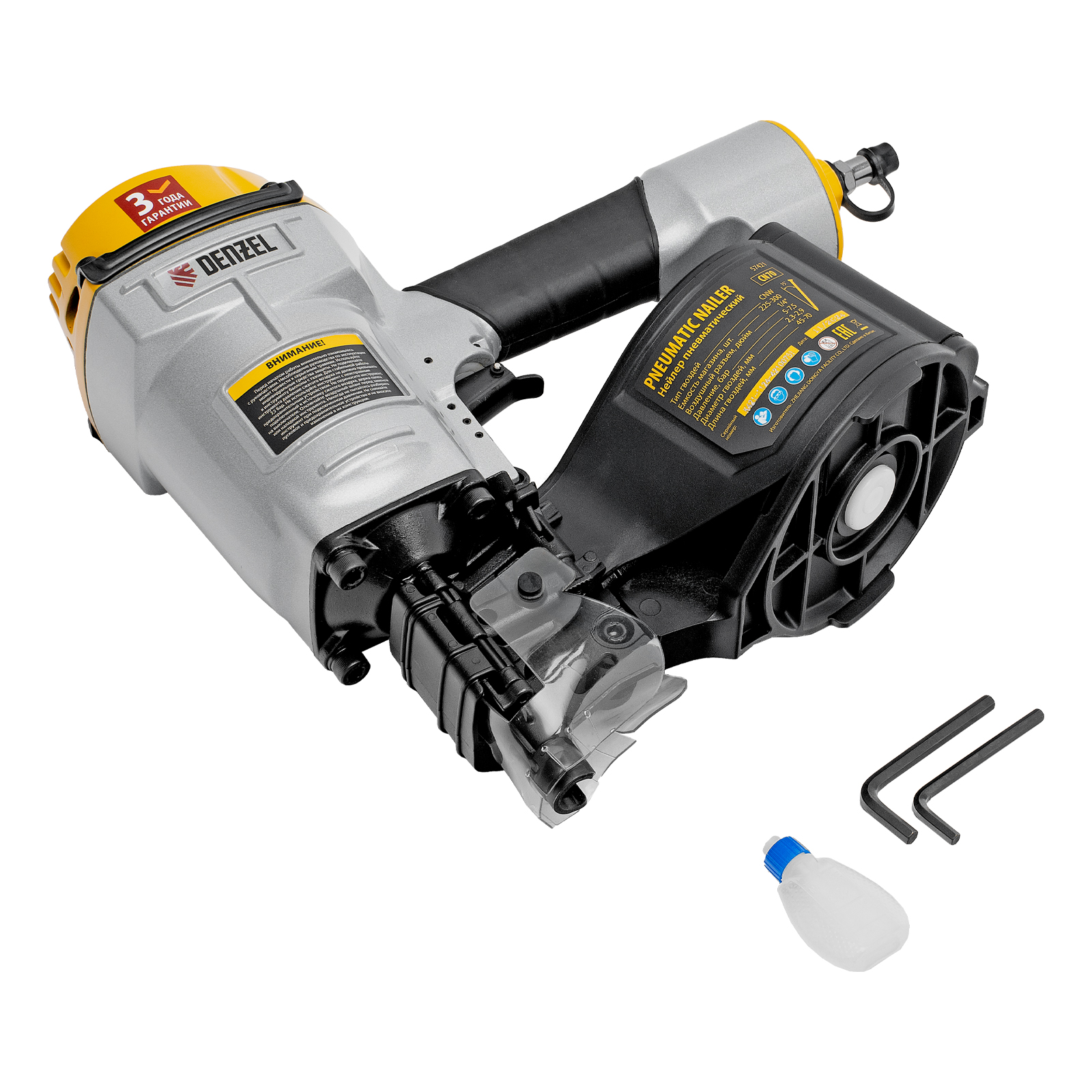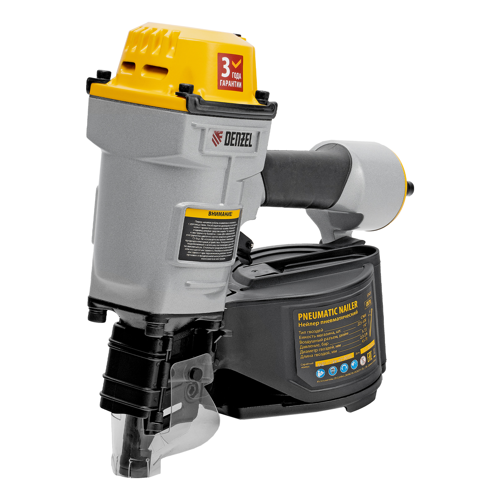 - Гарантия 3 года — надежность пневматического нейлера подтверждена производителем.