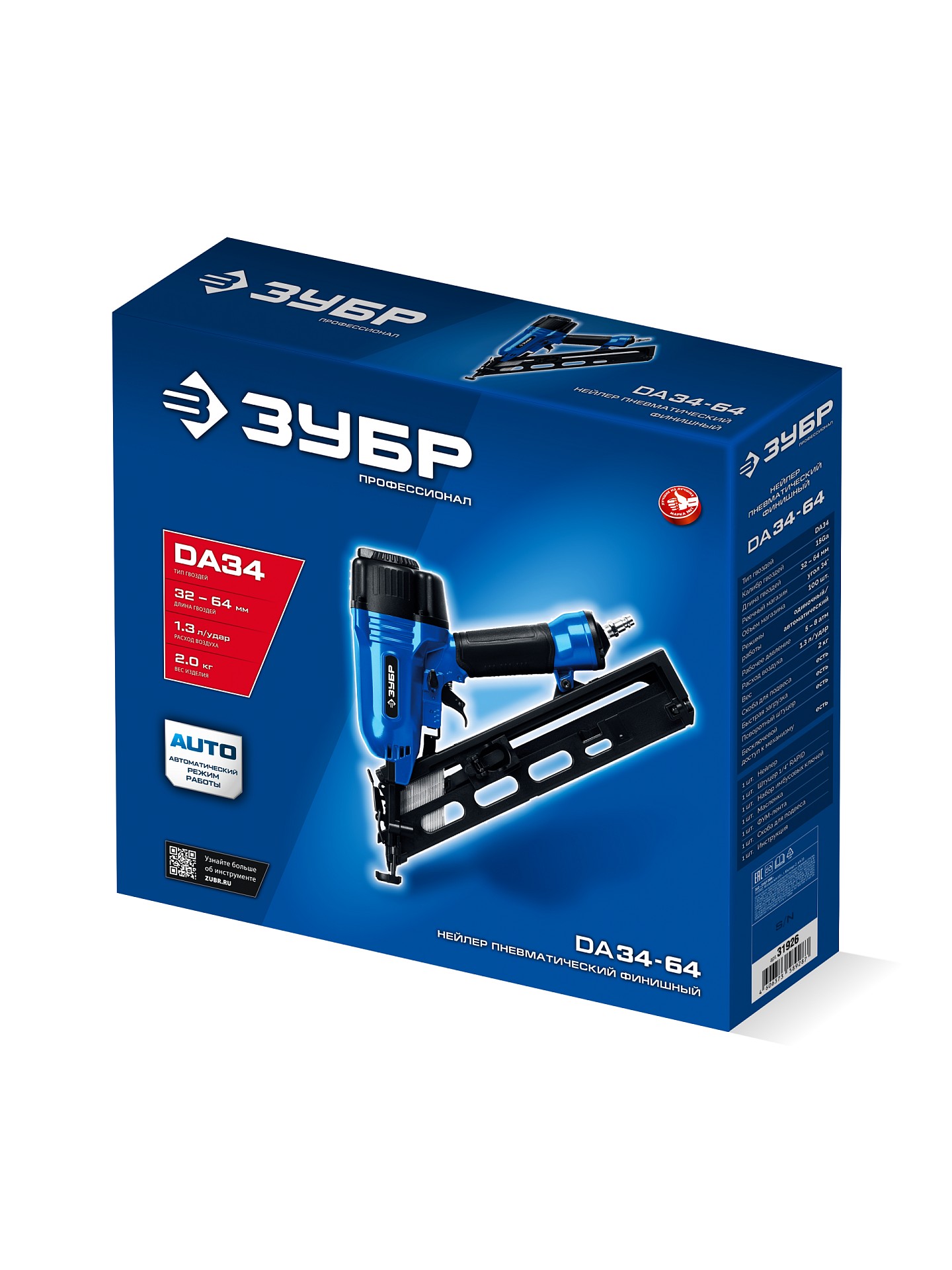 Применяемый тип расходных материалов Гвозди 15Ga, DA34 (32-64 мм)