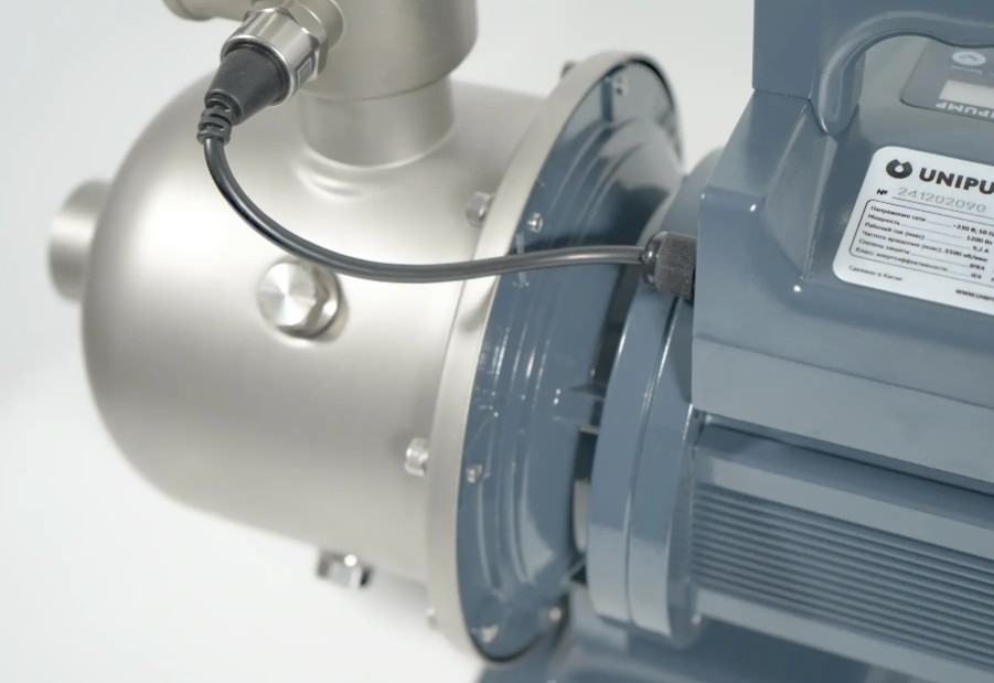 Частотный преобразователь регулирует работу насоса и скорость вращения рабочих колес, что позволяет поддерживать постоянное давление в системе водоснабжения, обеспечивая равномерное водоснабжение при одновременном использовании нескольких точек водоразбора.