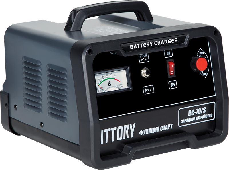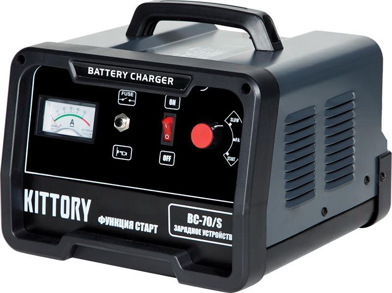 Пуско-зарядное устройство KITTORY BC-70/S предназначено для заряда свинцово-кислотных стартерных аккумуляторных батарей напряжением 12 и 24 В, используемых для электроснабжения различных видов транспортных средств и механизмов, кроме того предназначены для помощи штатной аккумуляторной батарее в пуске двигателя механических транспортных средств, в случае, когда батарея разряжена и в условиях низкой температуры окружающей среды.