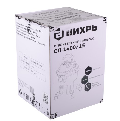 Строительный пылесос Вихрь СП-1400/15 предназначен для эффективной очистки помещений как от сухого мусора, так и от жидкостей. Кроме того, он может использоваться совместно с электроинструментами для удаления продуктов строгания, пиления и других отходов, образующихся в процессе работы.
