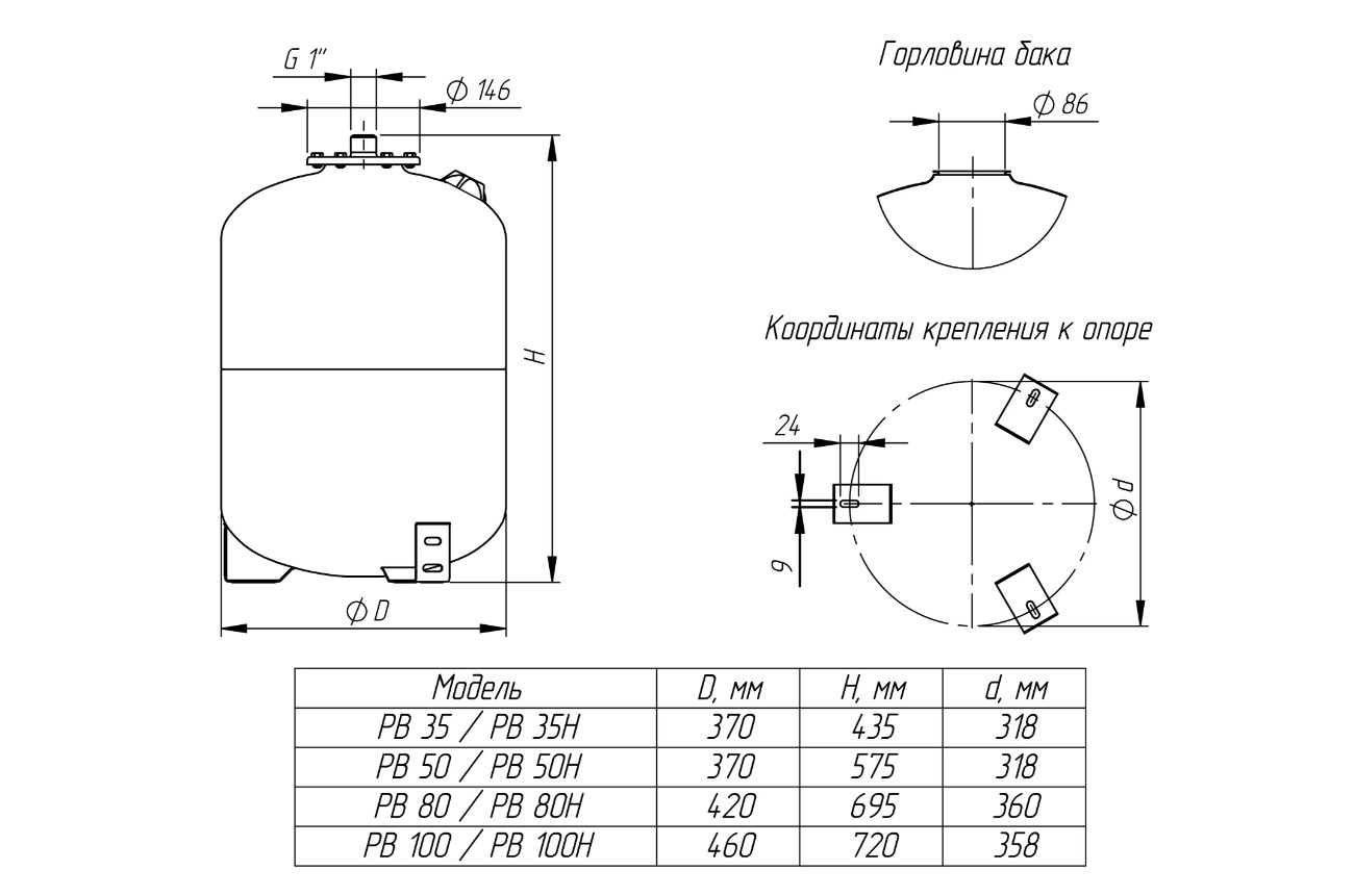 Объем бака 100 л