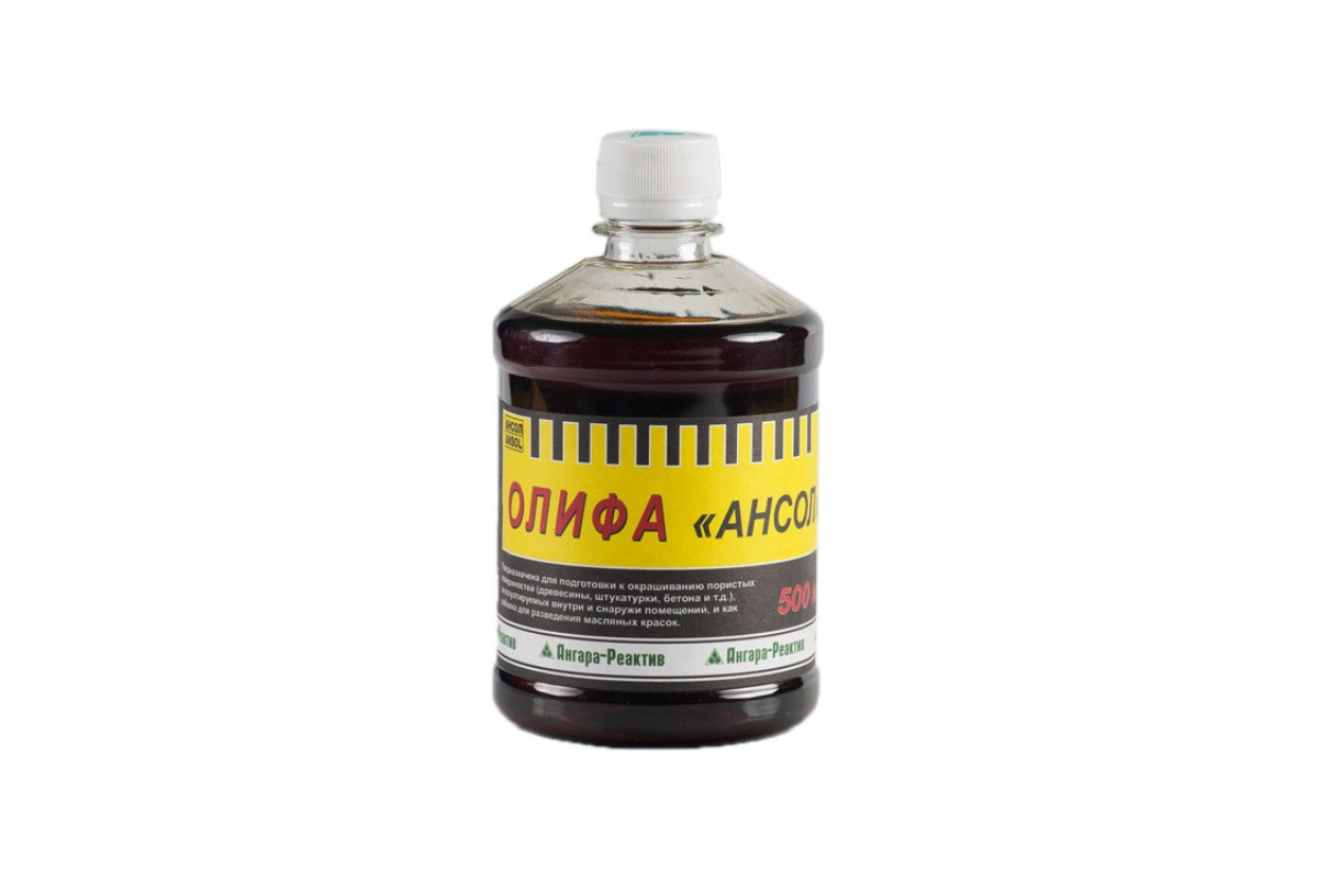 Олифа "Ансол" представляет собой раствор нефтеполимерной смолы «Пиропласт-2» в растворителях – Уайт-спирит, керосиновая фракция. Для пропитки пористых поверхностей (деревянных, штукатурки, бетона.) эксплуатируемых внутри и снаружи помещений, изготовления строительных составов. Рекомендуется к применению для разведения темных масляных красок, неответственных малярных работ внутри помещения.