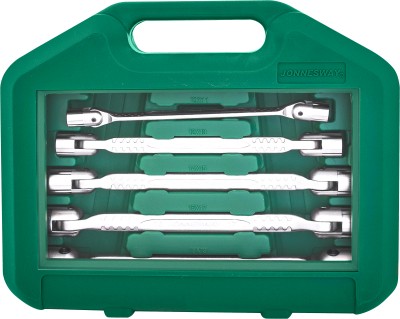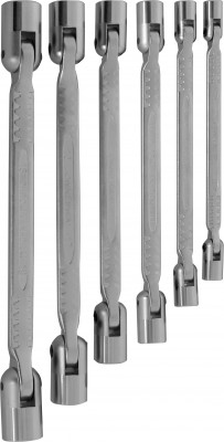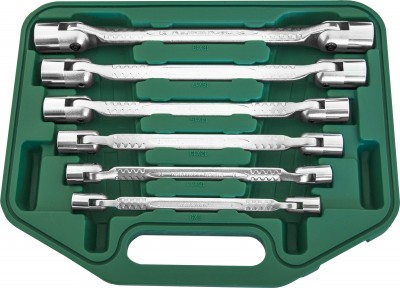 Гаечный ключ, объединяющий в своей конструкции вороток, удлинитель с шарниром и торцевой головкой. Ключ изготовлен из хромованадиевой стали, закален, имеет хромоникелевое покрытие.