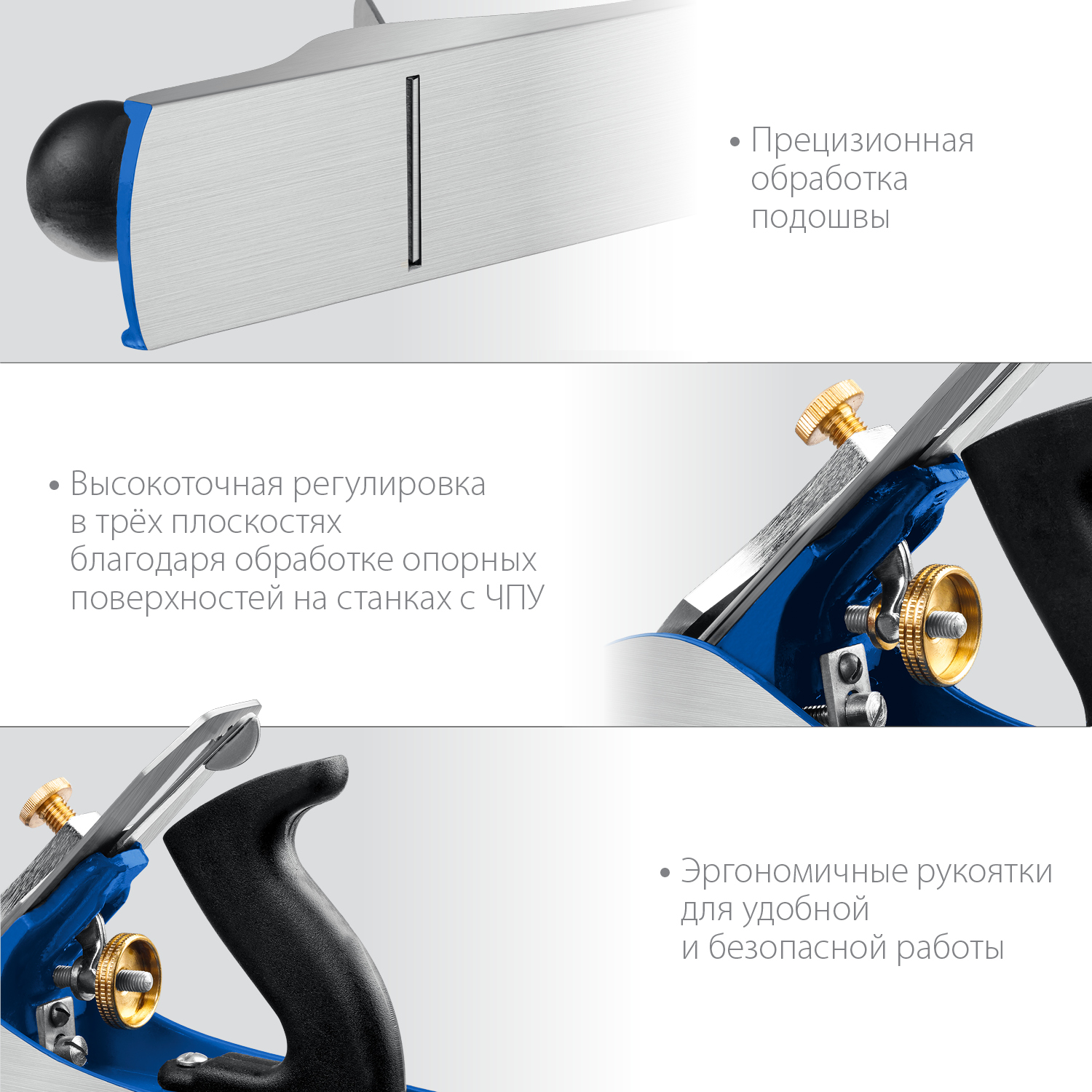 Применяется для профессионального чистового ручного строгания древесины различных пород, а также для строгания торцов заготовок или торцов деталей в собранных изделиях (рамках, коробках и др.).