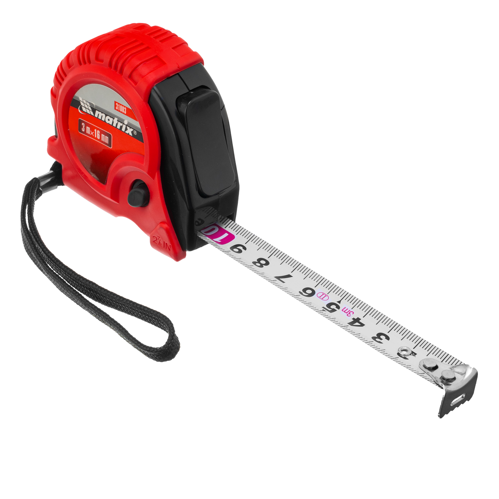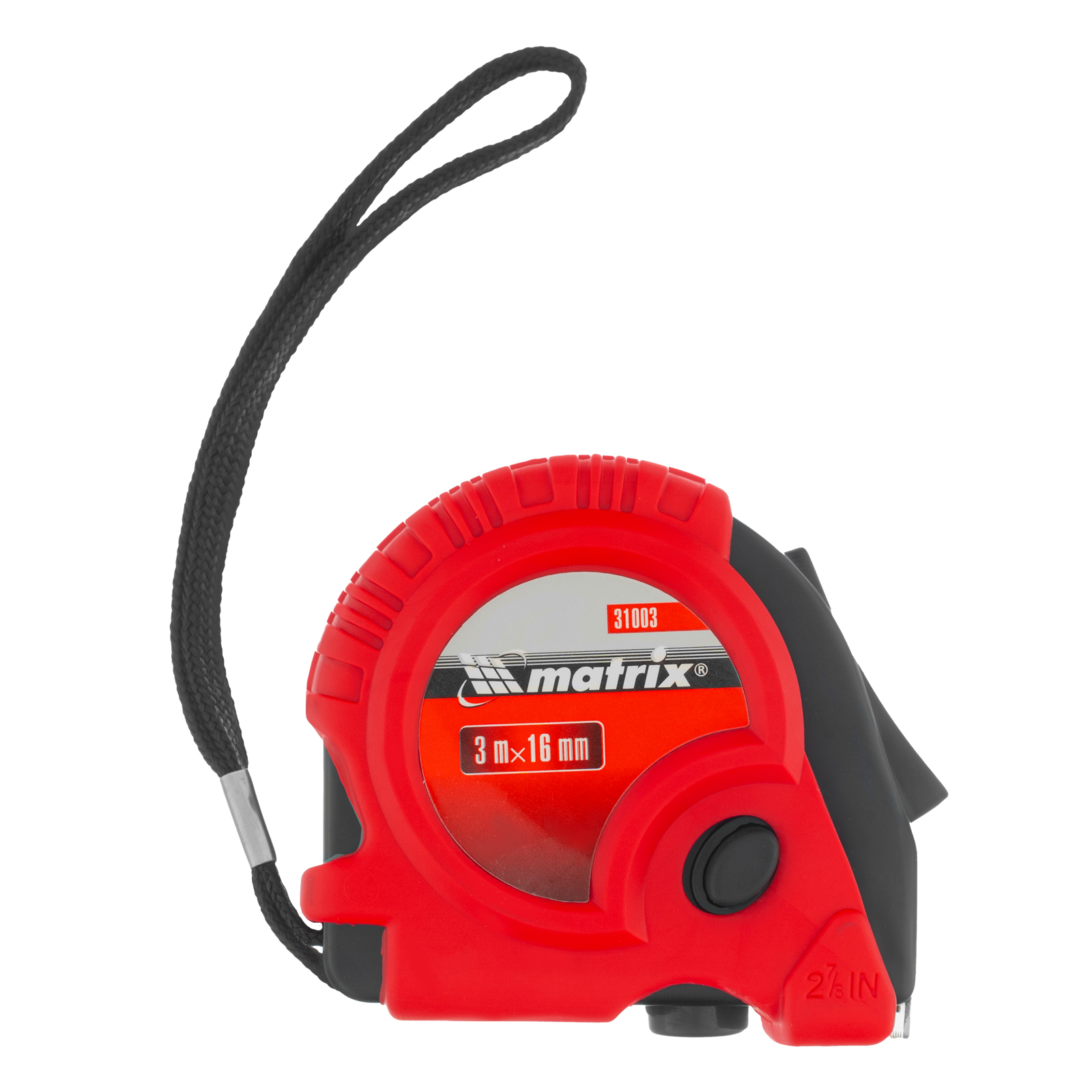 Рулетка Matrix Rubber 31003 с лентой длиной 3 м и шириной 16 мм, в обрезиненном корпусе, — измерительный инструмент для определения размеров и расстояний. Имеет самый распространенный 2 класс точности и цену деления 1 мм. Зацеп надежно закреплен двумя заклепками и не отскочит во время работы. Рулетка будет полезна во время ремонта и строительства, пригодится также в домашнем хозяйстве.