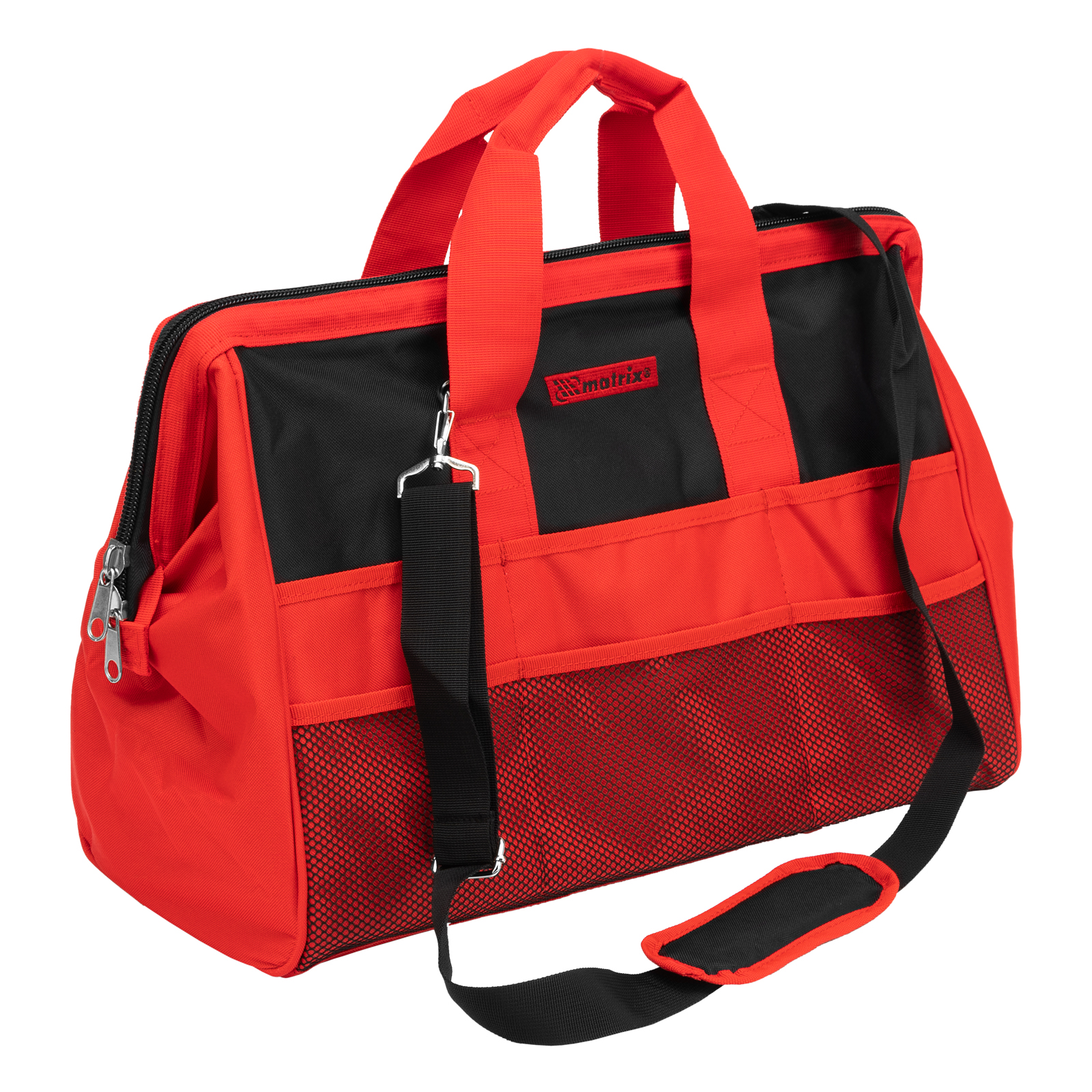 Сумка Matrix 90252 с 18 карманами, размером 510 х 210 х 360 мм, предназначена для транспортировки и хранения слесарных или столярных инструментов. Может использоваться для перевозки автопринадлежностей. В 18 карманах и вместительном основном отделении можно разместить инструменты разного размера. Сумка пригодится монтажнику, слесарю, строителю, будет полезна дома и в поездке.