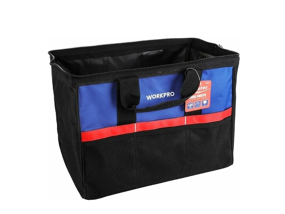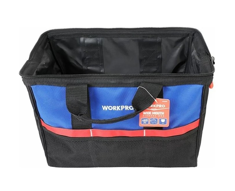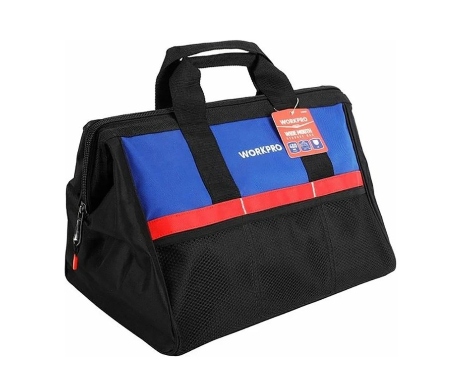 Сумка для инструмента WORKPRO 500D WP281002 445x290x320 мм, на молнии, с широким горлом 17,5" WP281002 используется для хранения и транспортировки инструмента. Широкое горло сумки обеспечивает быстрый доступ к инструменту и удобство наполнения.