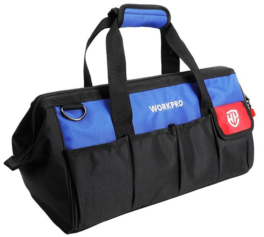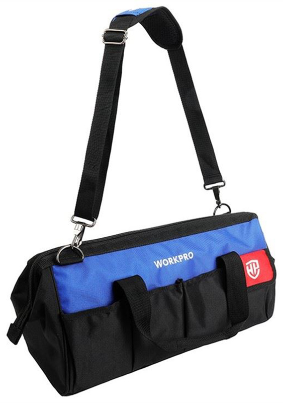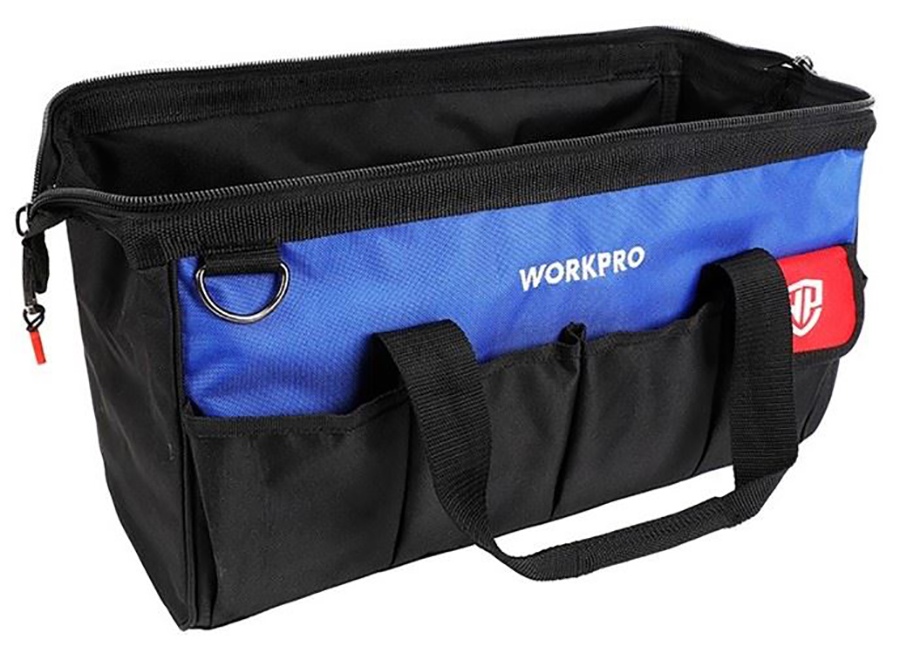 Сумка для инструмента WORKPRO 600D WP281005 460x215x245мм, с широким горлом, на молнии 18" WP281005 используется для хранения и транспортировки инструмента. Широкое горло сумки обеспечивает быстрый доступ к инструменту и удобство наполнения. Сумка выполнена из качественного полиэстера 600D, устойчивого к истиранию. Прочное дно препятствует деформации сумки под тяжестью содержимого. Различные карманы служат для хранения ключей, плоскогубцев, отверток и аксессуаров. Наружный боковой сетчатый карман позволяет разместить необходимые аксессуары для быстрого к ним доступа.