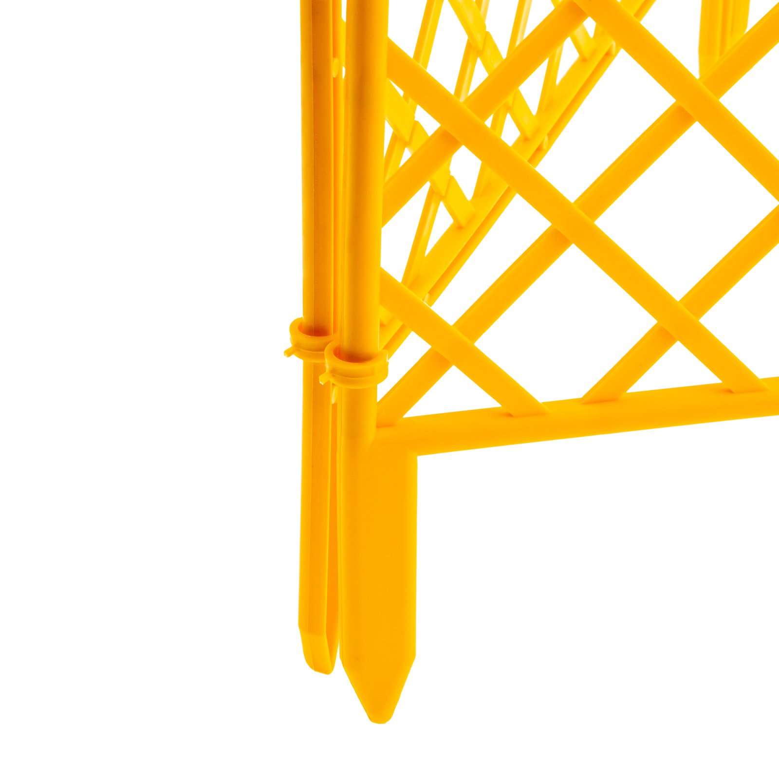Декоративный забор Palisad «Сетка» 65001 желтого цвета, размером 24 х 320 см, состоит из 7 секций и позволяет зонировать озелененный участок. С его помощью можно украсить дачную территорию — обозначить границы грядки или зоны отдыха, оформить клумбу, оградить кустарник или дерево.