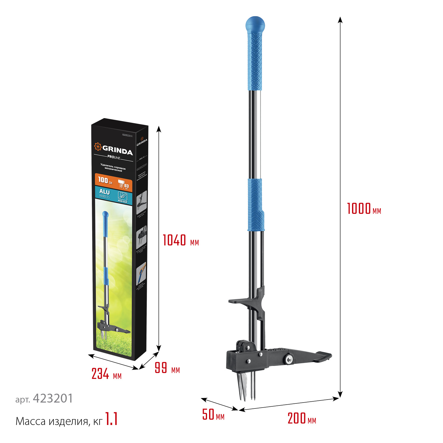 - Встроенный механизм высвобождения инструмента от сорняков