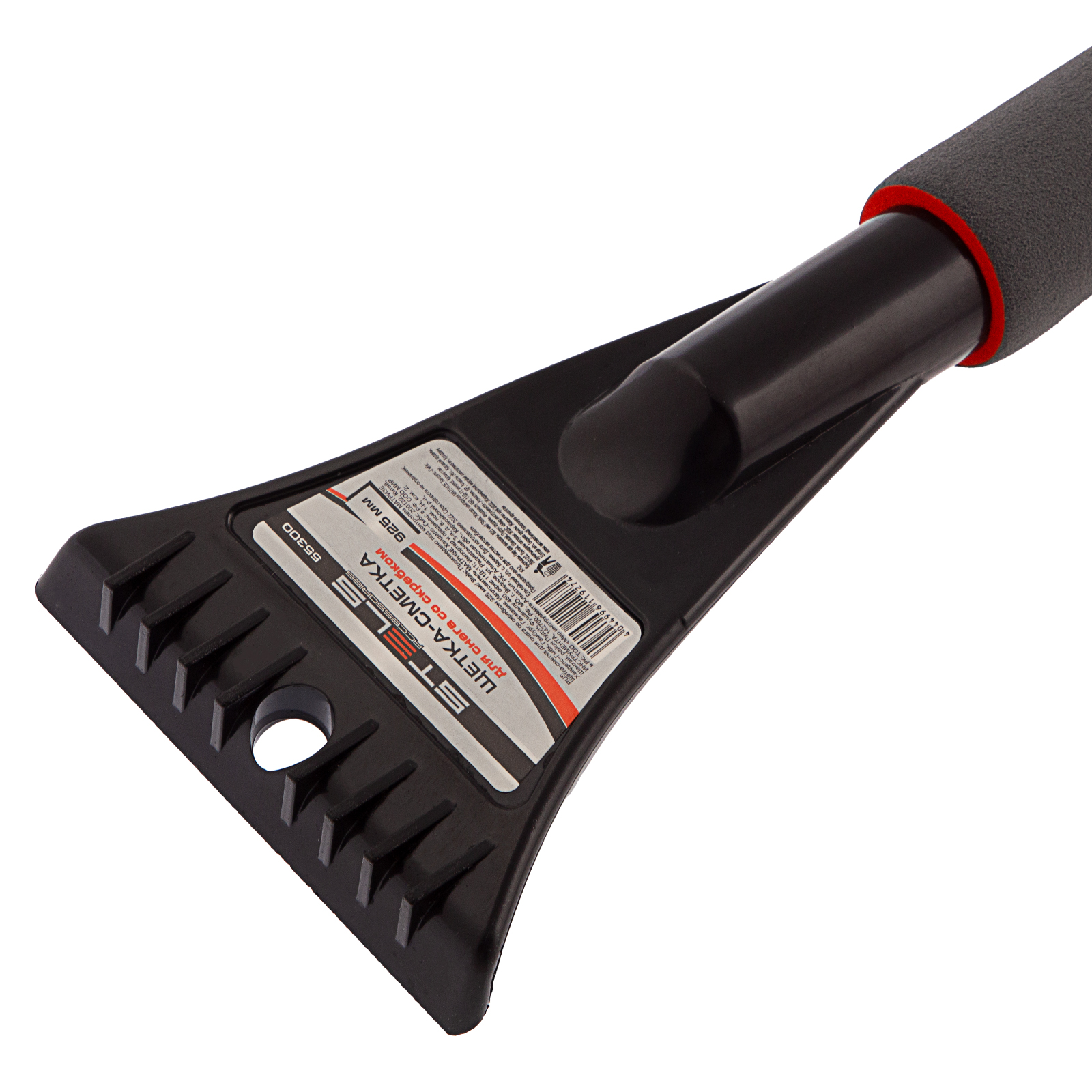 Щетка-сметка для снега со скребком Stels 55300 длиной 925 мм используется для чистки автомобиля в зимний период. Она не царапает лакокрасочное покрытие, поскольку ее щетина имеет распушенные кончики. Благодаря удлиненной рукоятке удобно чистить капот и крышу автомобиля. Щетка со скребком пригодится автолюбителям.