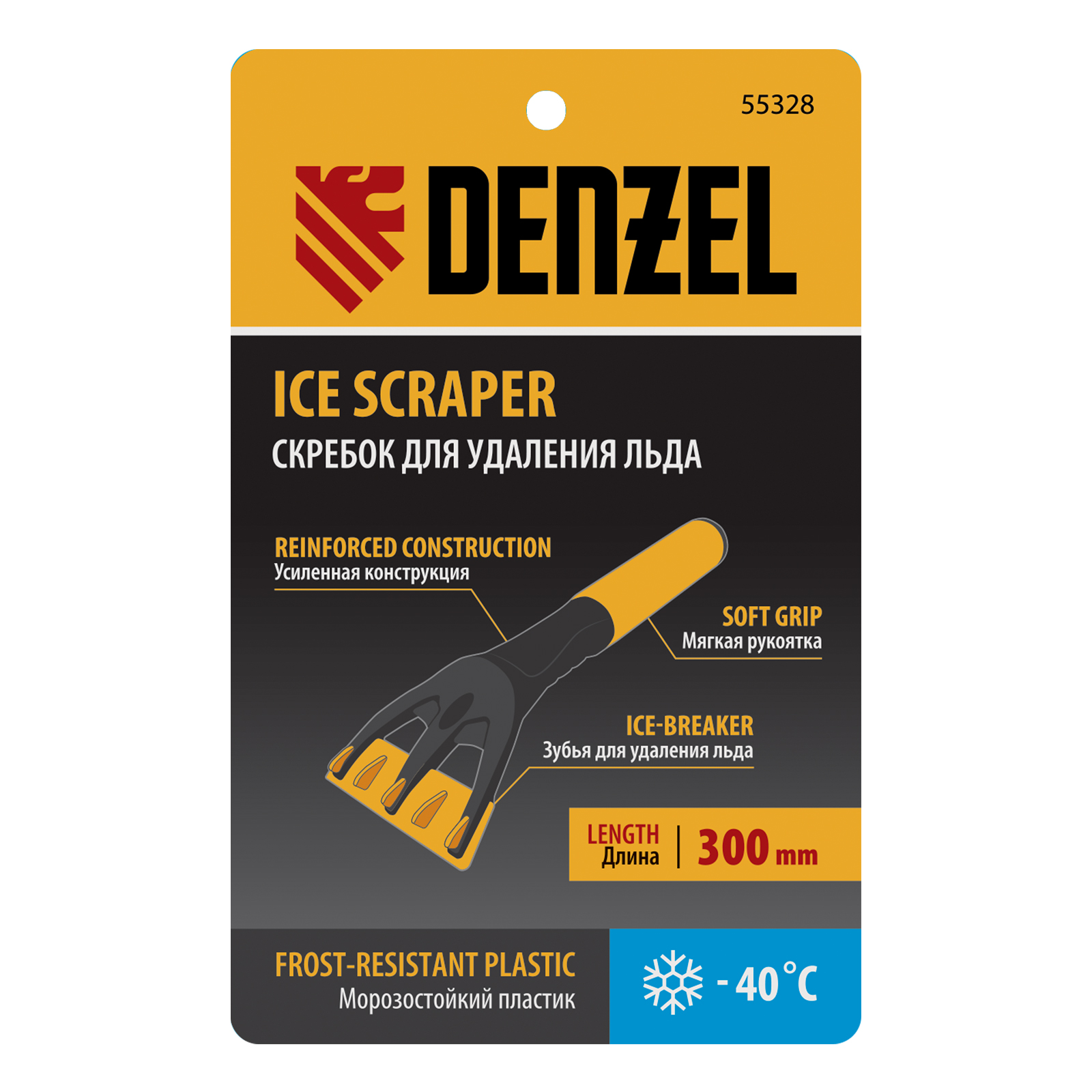 Скребок Denzel 55328 с мягкой рукояткой предназначен для удаления наледи со стекол и зеркал автомобиля. Благодаря компактным размерам 300 х 100 мм он легко помещается в салоне автомобиля и всегда доступен.