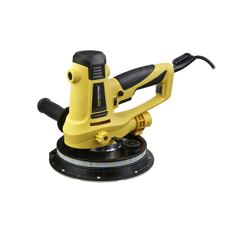 Шлифовальная машина для стен и потолка Hanskonner HDWS6085 — компактный и удобный электроинструмент для сухого шлифования штукатурки, гипсокартона и тому подобных материалов. Данная модель оснащена константной электроникой, которая повышает мощность при увеличении нагрузки, чем способствует продуктивной работе, и функцией плавного пуска что предотвращает избыточный износ. Вместе с тем возможность регулировать скорость вращения и жесткость платформы способствует качественной подготовки к широкому спектру обрабатываемых поверхностей.