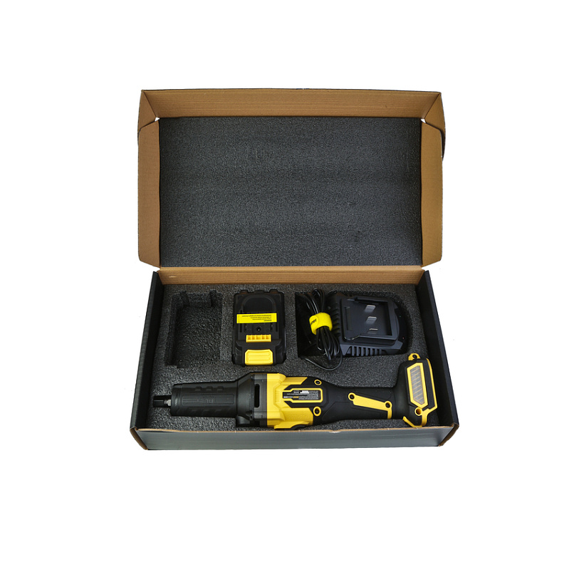 Прямая шлифовальная машина Hanskonner HSG1868 — часть семейства инструментов 1BatterySystem 18В. Это маневренное и универсальное устройство для широкого спектра работ: шлифовка и выравнивание поверхностей,удаление заусенцев, сварочных швов и дефектов, фрезерование различных материалов.