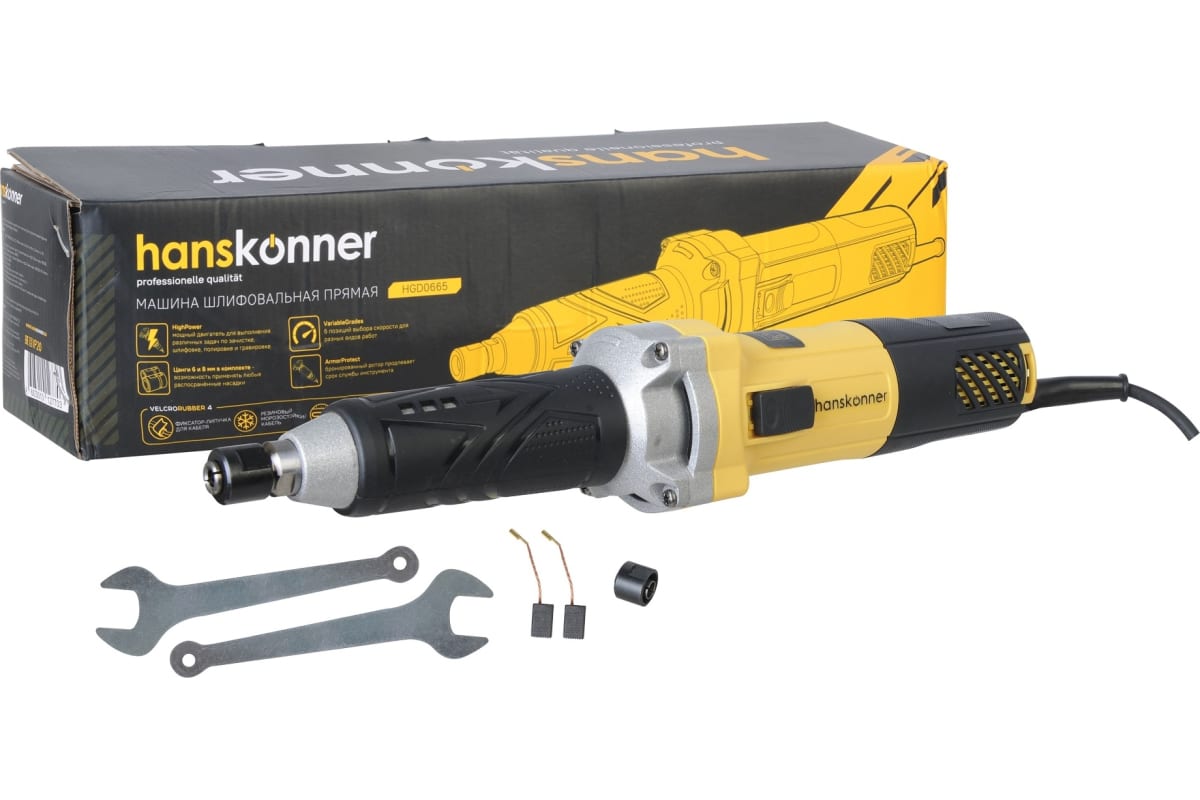 Прямая шлифовальная машина Hanskonner HGD0665 — маневренное универсальное устройство для широкого спектра работ: резка, сверление, полирование, гравирование, шлифование, фрезерование различных материалов: металл, дерево, камень, стекло, пластмасса и т.д. Данная модель оснащена настройкой оборотов VariableGrades с 6 позициями выбора скорости, от 10000 до 30000 об/мин, для разных видов работ.