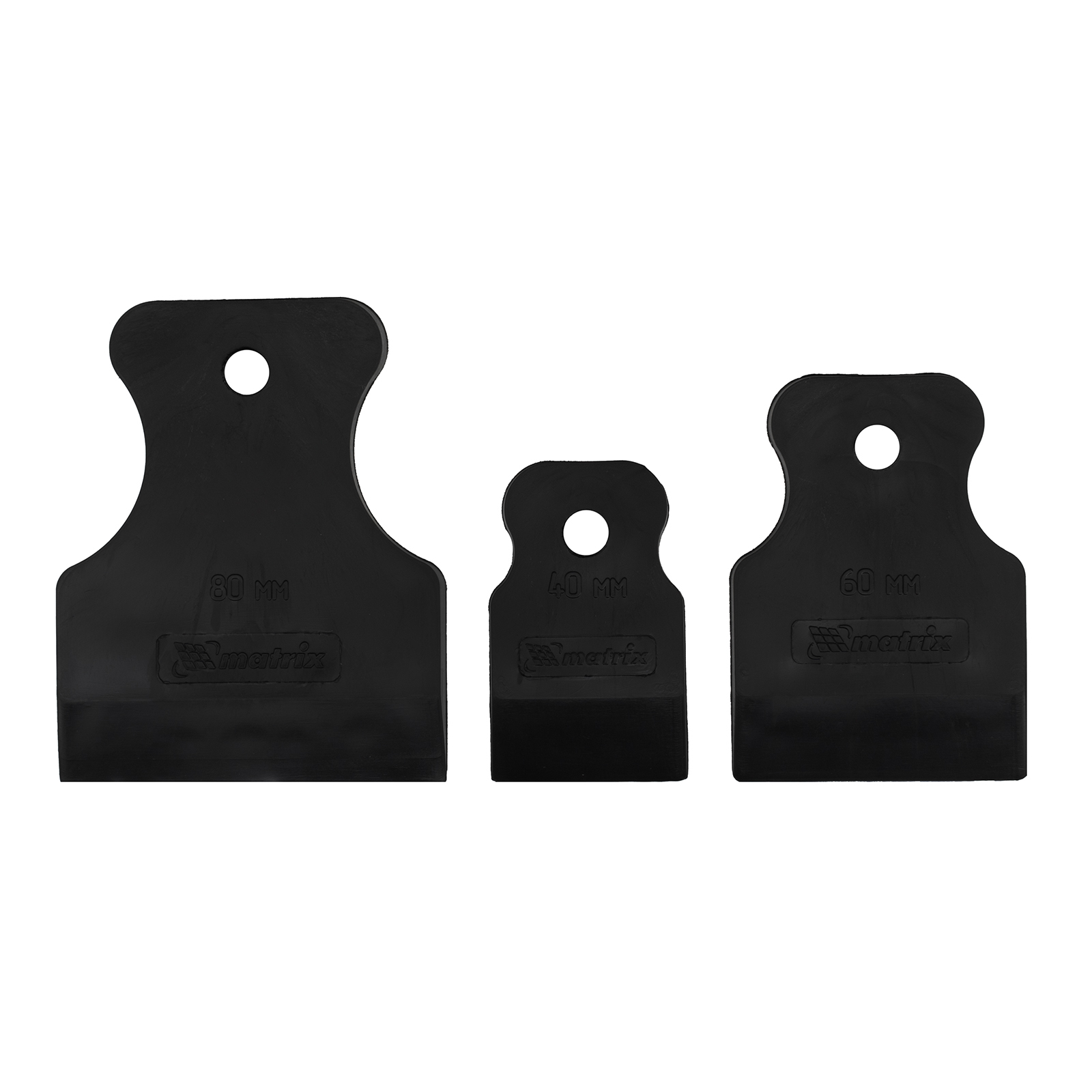 Набор Matrix 858285 включает в себя 3 шпателя из черной резины размером 40-60-80 мм. Используется для создания финишных покрытий, затирки плиточных швов и работы с герметиками. Резиновые рабочие поверхности не оставляют следов и царапин, обеспечивают ровное нанесение материалов.