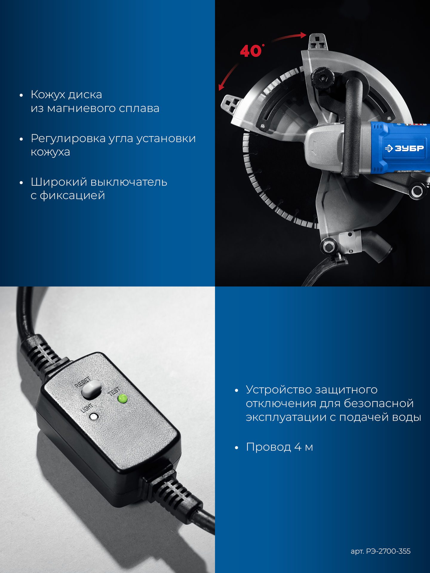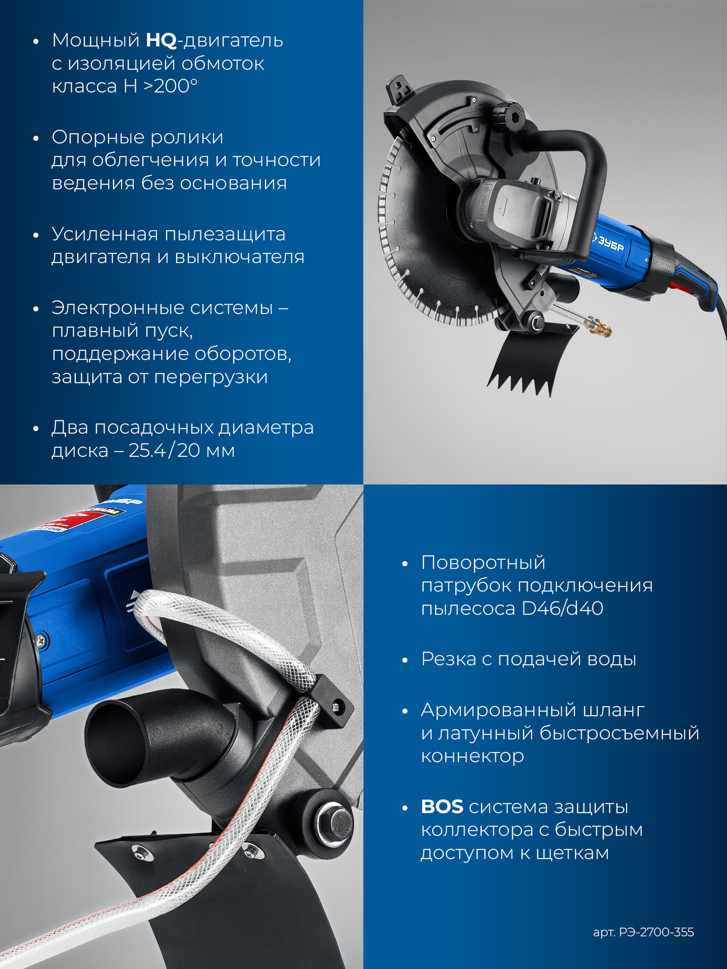 - Возможность работы с подачей воды к месту реза улучшает режим работы диска и уменьшает образование пыли