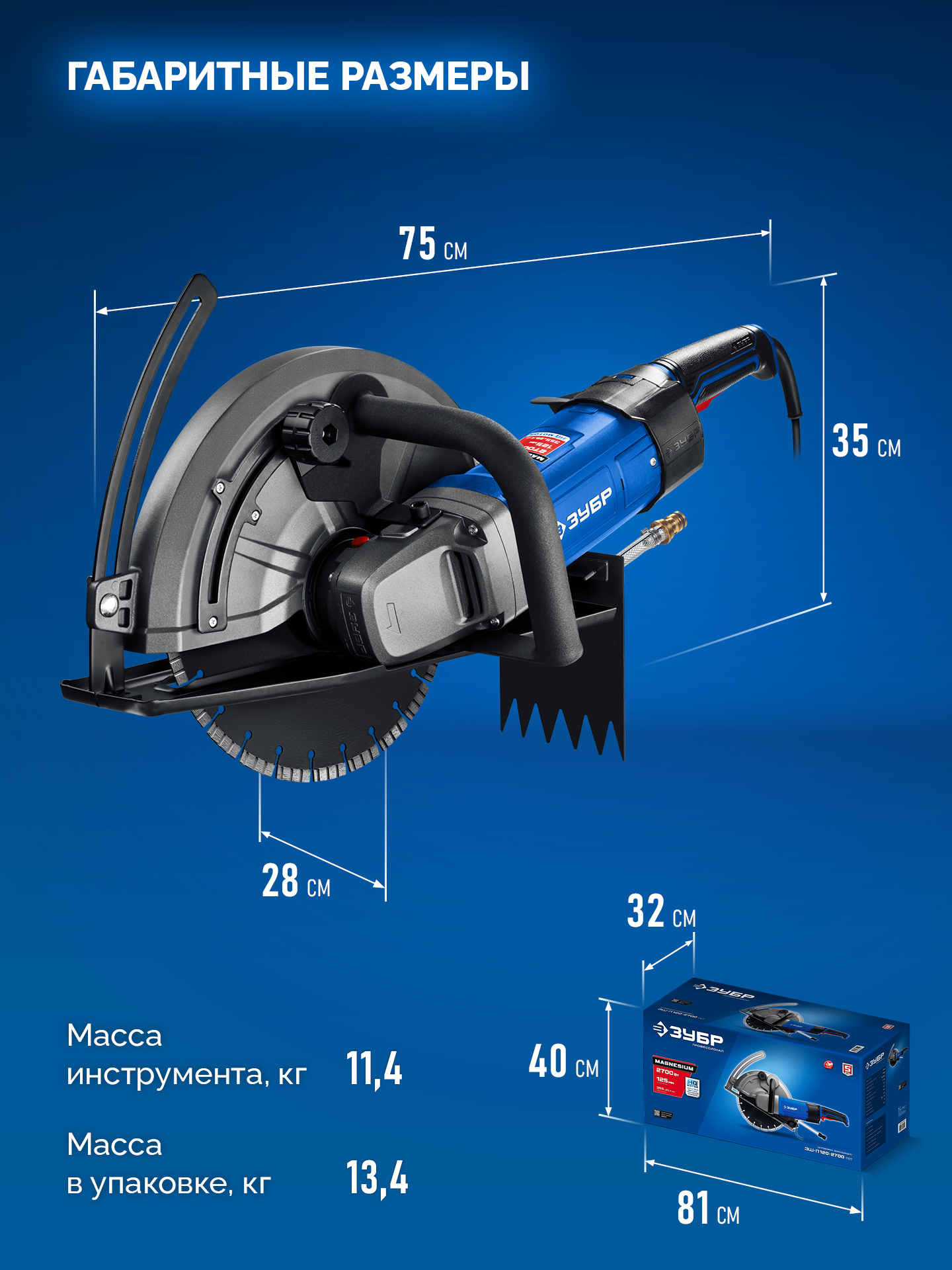 Инструмент для наиболее трудных и глубоких (до 125 мм) резов любых материалов - бетона, асфальта, бордюров, металла, кирпича. Высокая мощность двигателя в сочетании с передаточным отношением редуктора дает большой крутящий момент на валу, что позволяет резать быстро и эффективно. Эффективный пылеотвод или работа с подачей воды защищают от пыли. Съемное основание для горизонтальных продольных резов