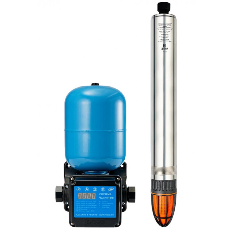 Система автоматического водоснабжения «ВОДОМЕТ» 55/75-Ч с частотным регулированием предназначена для бесперебойного водоснабжения в автоматическом режиме коттеджей, дач и ферм. Главное преимущество системы — поддержание постоянного заданного давления в водопроводной сети независимо от количества одновременно работающих точек водоразбора. В системе установлен насос, который обладает максимальным расходом 55 литров в минуту и максимальным напором 75 метров. Он способен перекачивать воду с содержанием песка во взвешенном состоянии до 2 килограмм на кубический метр воды. Электродвигатель насоса надежно защищен от перегрева потоком омывающей воды, что позволяет насосу работать не полностью погруженным в воду. Пульт управления насосом «ВОДОМЕТ» 55/75-Ч, является микропроцессорным пультом управления, оснащенным цифровым дисплеями и клавиатурой, позволяющими программировать режим работы насоса и просматривать значения давления в водопроводной сети, потребляемого тока, коэффициента загрузки электродвигателя и информацию о возникающих ошибках. Он обеспечивает насосу комфортные условия работы, так как служит для: плавного пуска и плавной остановки насоса, поддержания заданного диапазона давления в водопроводной сети, защиты насоса от «сухого хода», перегрузок и скачков напряжения. Пульт управления в своем составе имеет гидроаккумулятор, который служит для аккумулирования воды под давлением и сглаживания колебаний напора в сети.