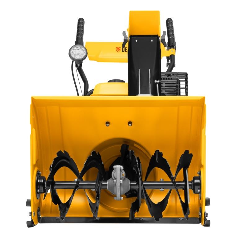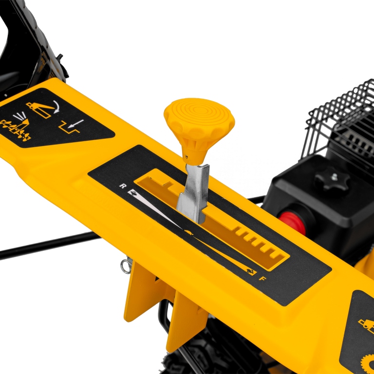 - Комфортная работа — рычаг поворота желоба позволяет легко выбрать желаемое направление выброса снега, а яркая LED-фара позволяет работать в условиях плохой видимости.
