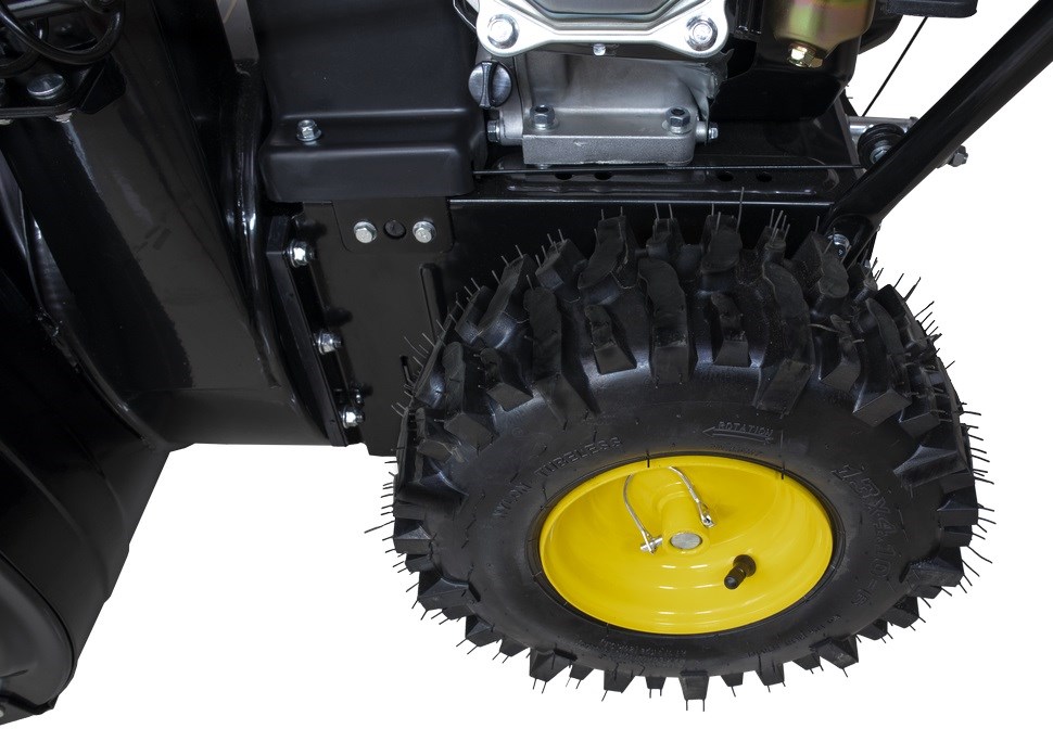 Снегоуборщик Huter SGC 5500Х оснащён ручным стартером. Имея 6 скоростей, он будет уверенно ехать по асфальту или гравию, расчищая снег. Для движения назад доступны 2 скорости. Зимний протектор шин гарантирует высокую проходимость на скользких участках.