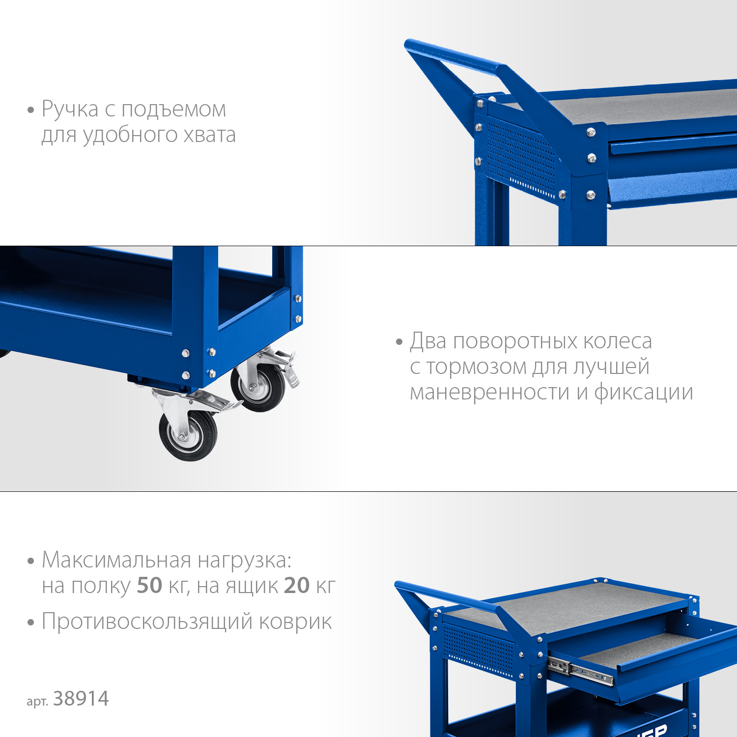 Тележка ЗУБР позволит комфортно организовать рабочее место с легким доступом ко всем инструментам.