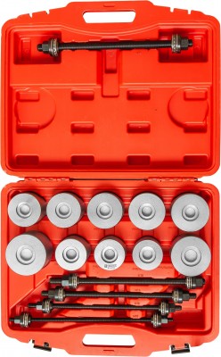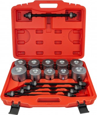 Набор предназначен для производства работ по замене сайлентблоков при обслуживании подвески автомобилей. Широкий диапазон размеров оправок, входящих в комплект набора, позволяет обслуживать максимально возможный спектр транспортных средств.