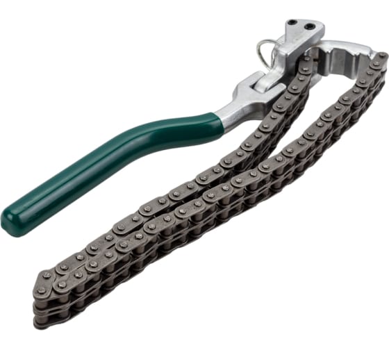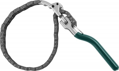 Усиленный съемник корпусных масляных фильтров, в котором в качестве захвата используется двурядная цепь длиной 520 мм, устанавливаемая в захват гибкой рукоятки, что позволяет использовать инструмент в труднодоступных местах.