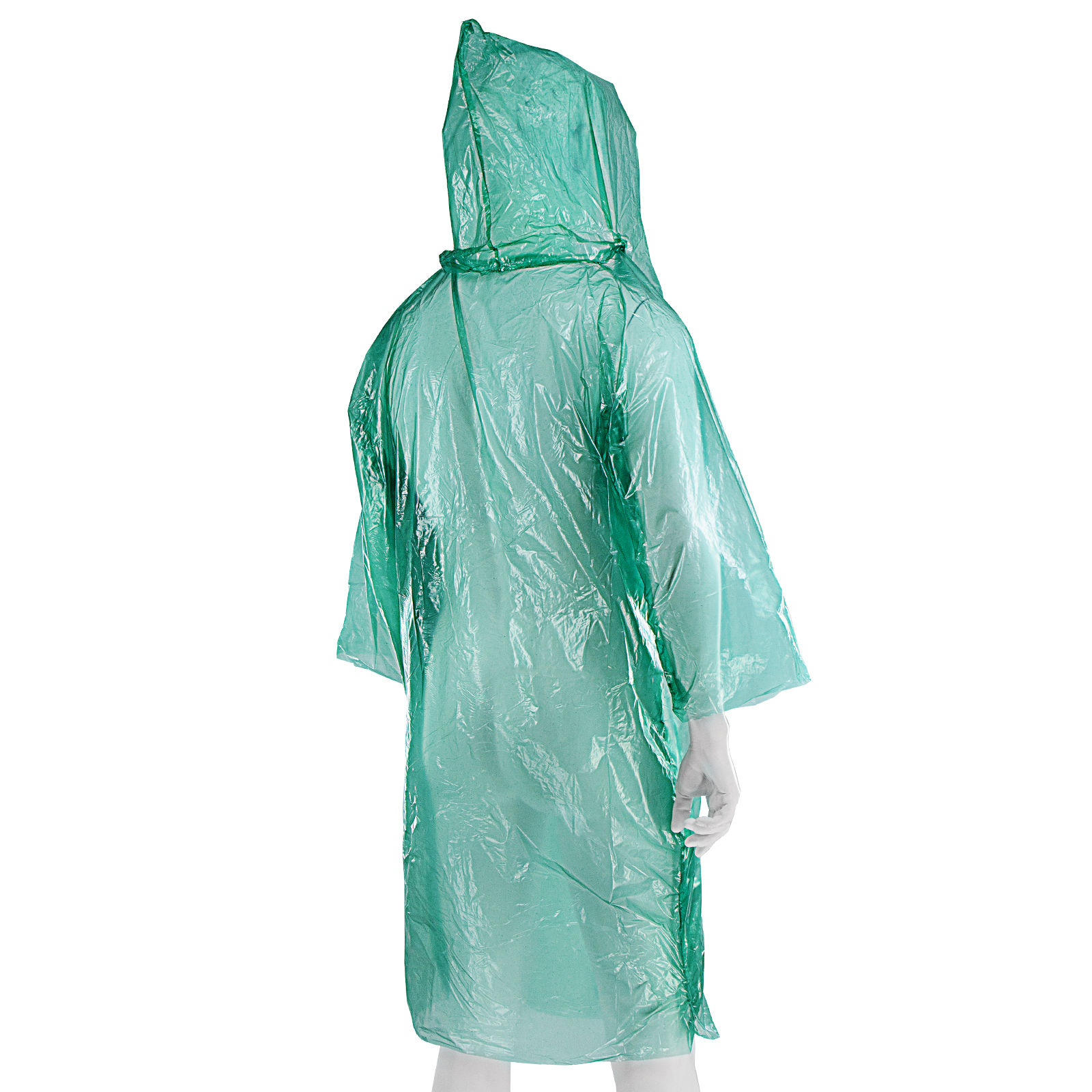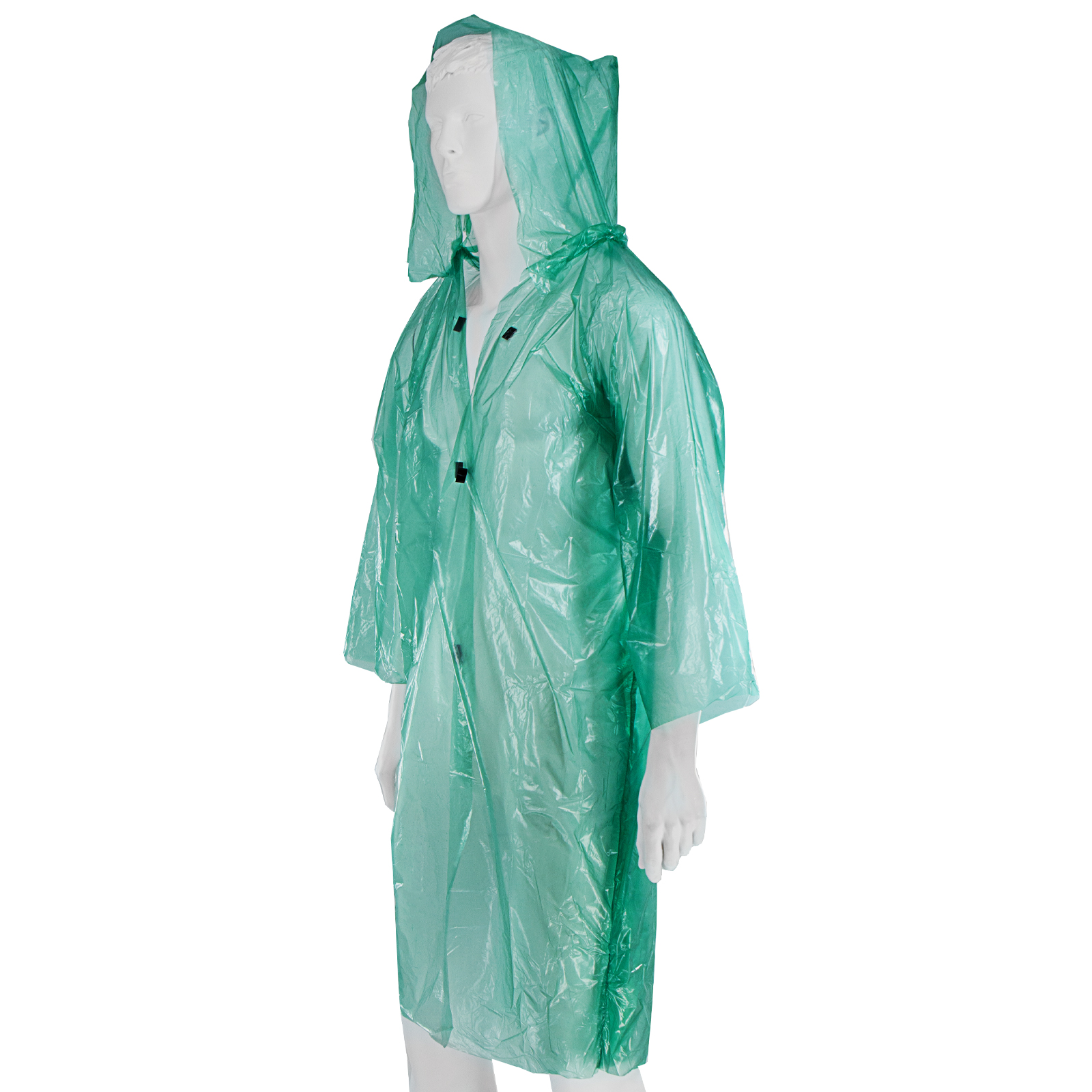 - Долговечность — плащ изготовлен из полиэтилена высокого давления толщиной 35-40 мкм, устойчивого к механическим повреждениям, поэтому подходит для многократного применения.