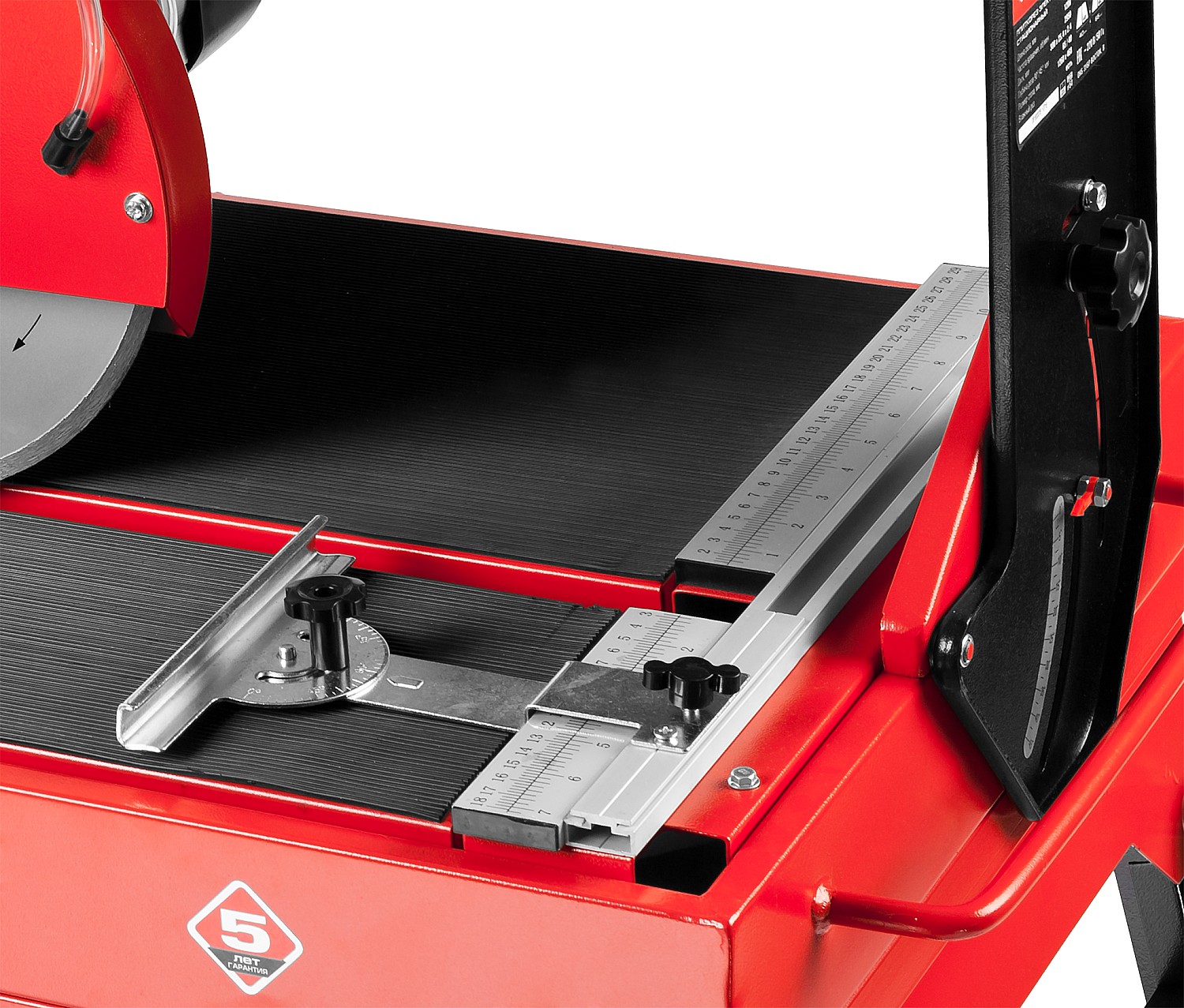 - Точная установка разрезаемой плитки благодаря фиксирующему упору со шкалой