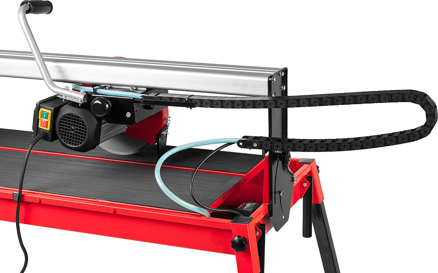 Высокоточный инструмент для резки всех видов плитки. Подвижная головка диска имеет профессиональную конструкцию подшипникого узла, что обеспечивает высокую точность линии реза и мягкий ход каретки. Влажный рез с принудительной подачей воды к месту реза способствует эффективному охлаждению и предохраняет от образования пыли. Ролики, установленные на ножках, облегчают передвижение станка