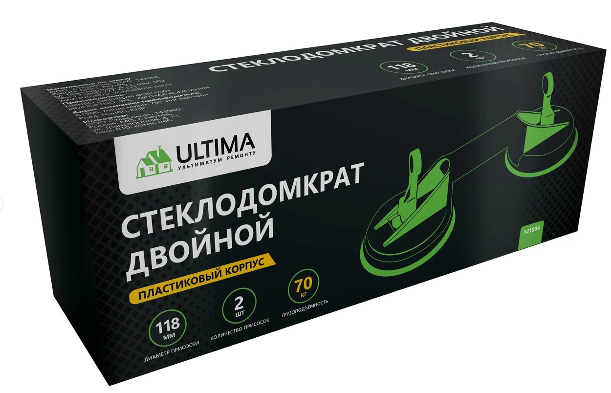 Двойной стеклодомкрат Ultima 70 кг, пластик 141004 предназначен для работы с листовым металлом и стеклом. Надежная вакуумная фиксация присоски стеклодомкрата помогает переносить и устанавливать оконные стекла и стеклопакеты. Корпус изготовлен из прочного пластика.